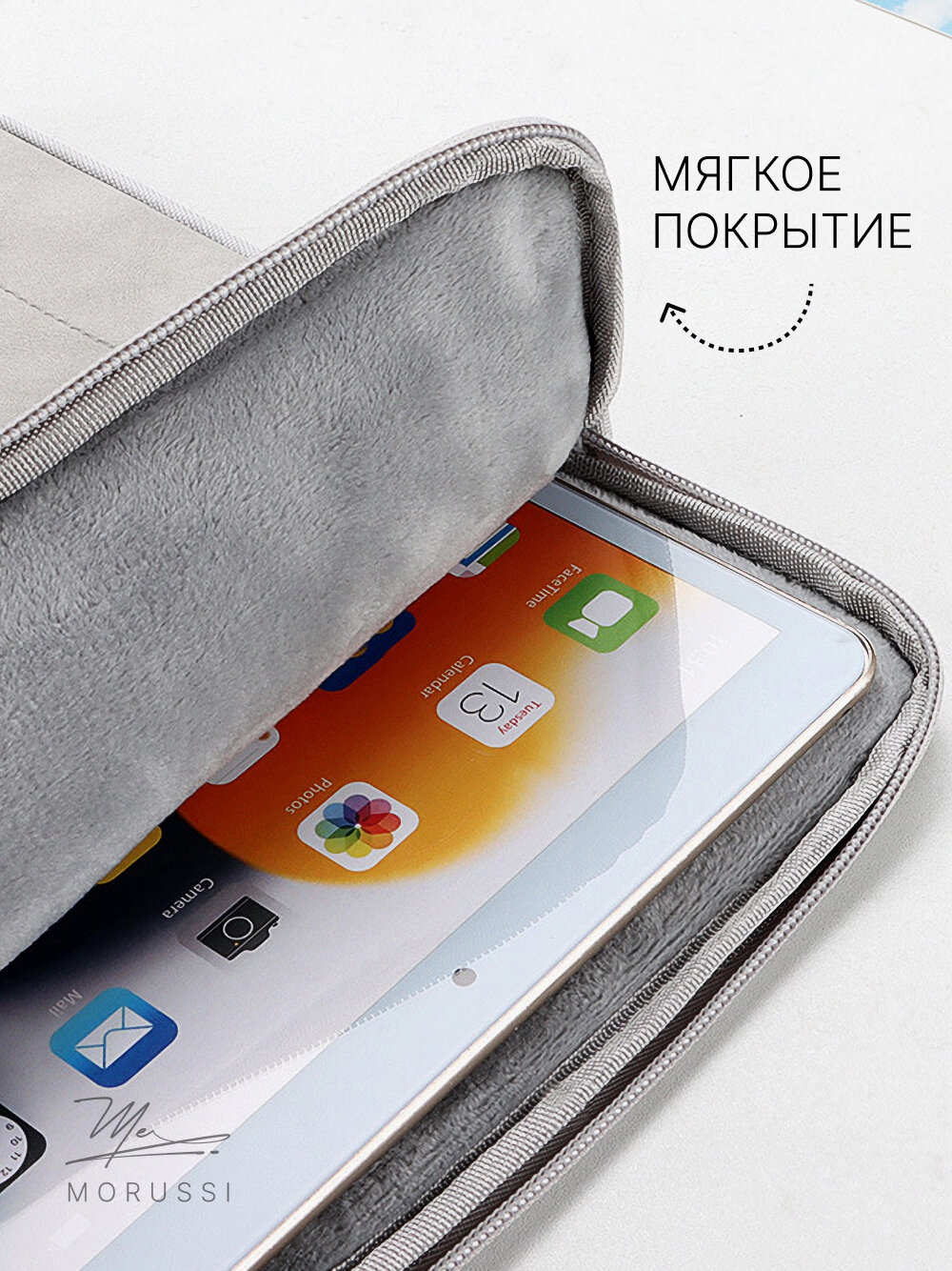 Чехол MORUSSI 13 Pro, текстиль, с карманом, для Apple iPad 13, белый