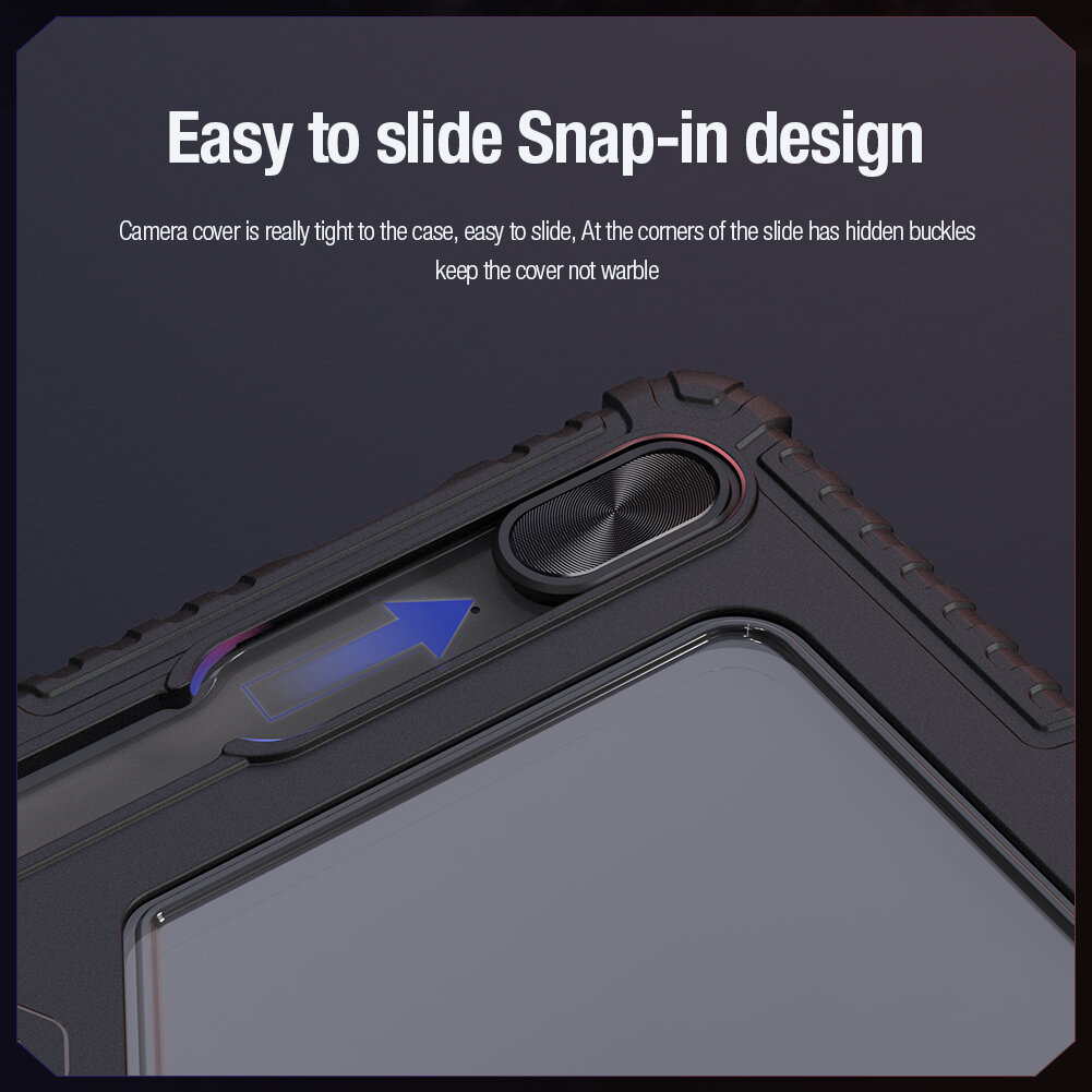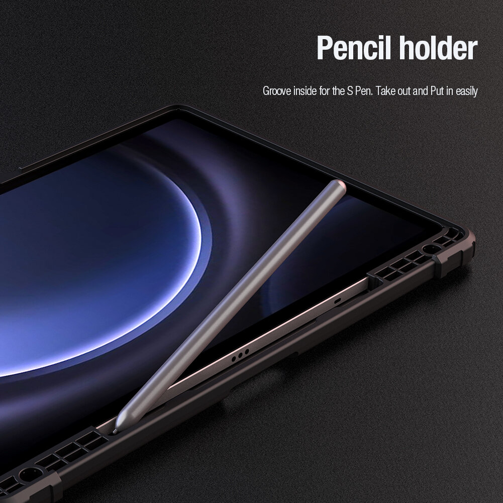 Чехол книжка от Nillkin для планшета Samsung Galaxy Tab S9 FE+ Плюс, серия Bumper Pro Case-Multi Angle Folding Style, с защитной шторкой для камеры интересное: