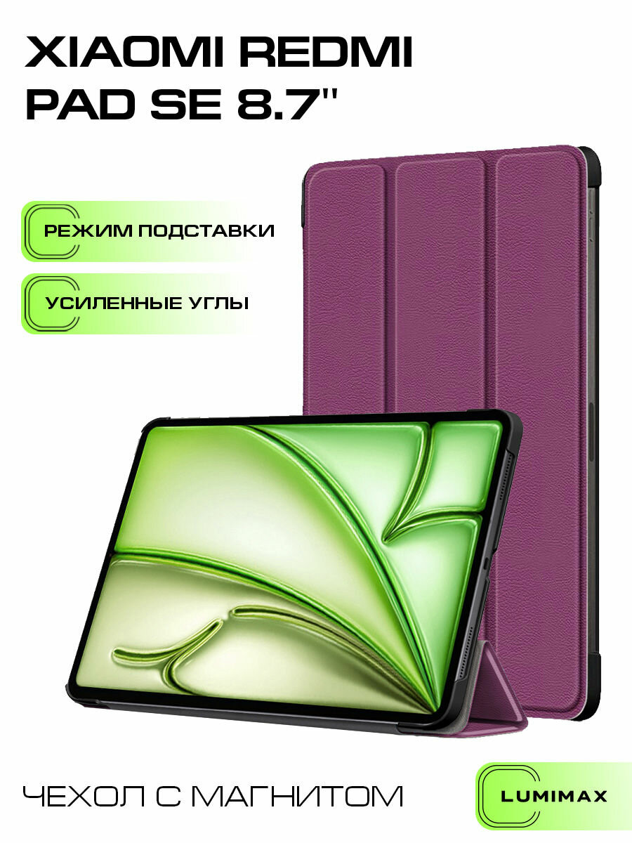 Чехол для Xiaomi Redmi Pad SE 8.7" с магнитом, противоударный, фиолетовый интересное: