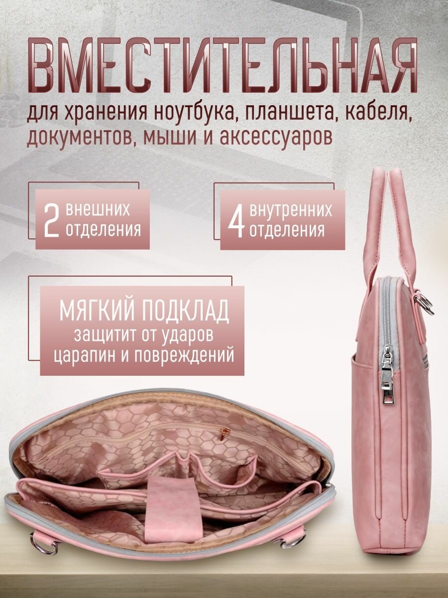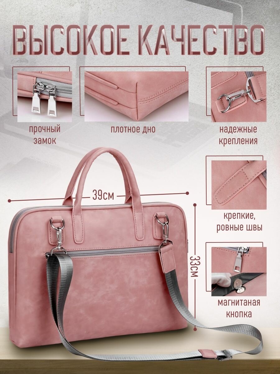 Сумка для ноутбука цвет розовый искусственная кожа (искусственная замша), для планшета для документов диагональ 15,6 дюймов интересное: