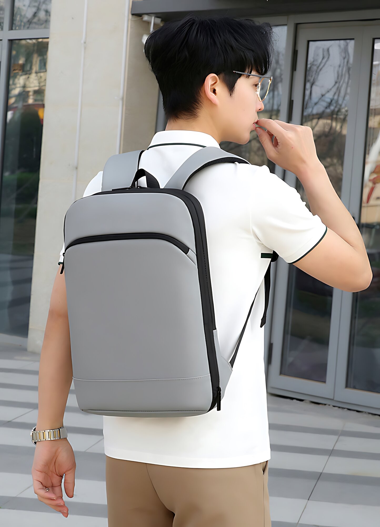 Купить Рюкзак для ноутбука 15,6 дюйма с возможностью увеличения объема, светло-серый