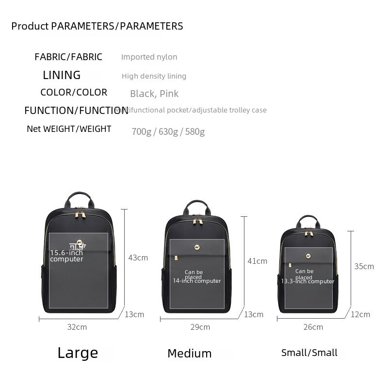 Рюкзак для ноутбука, водонепроницаемый, нейлоновый 15.6", розовый