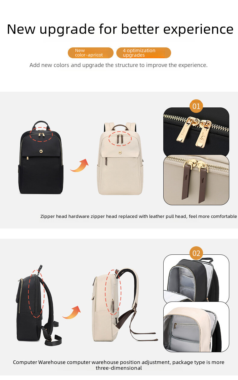 Рюкзак для ноутбука, водонепроницаемый, нейлоновый 15.6", бежевый