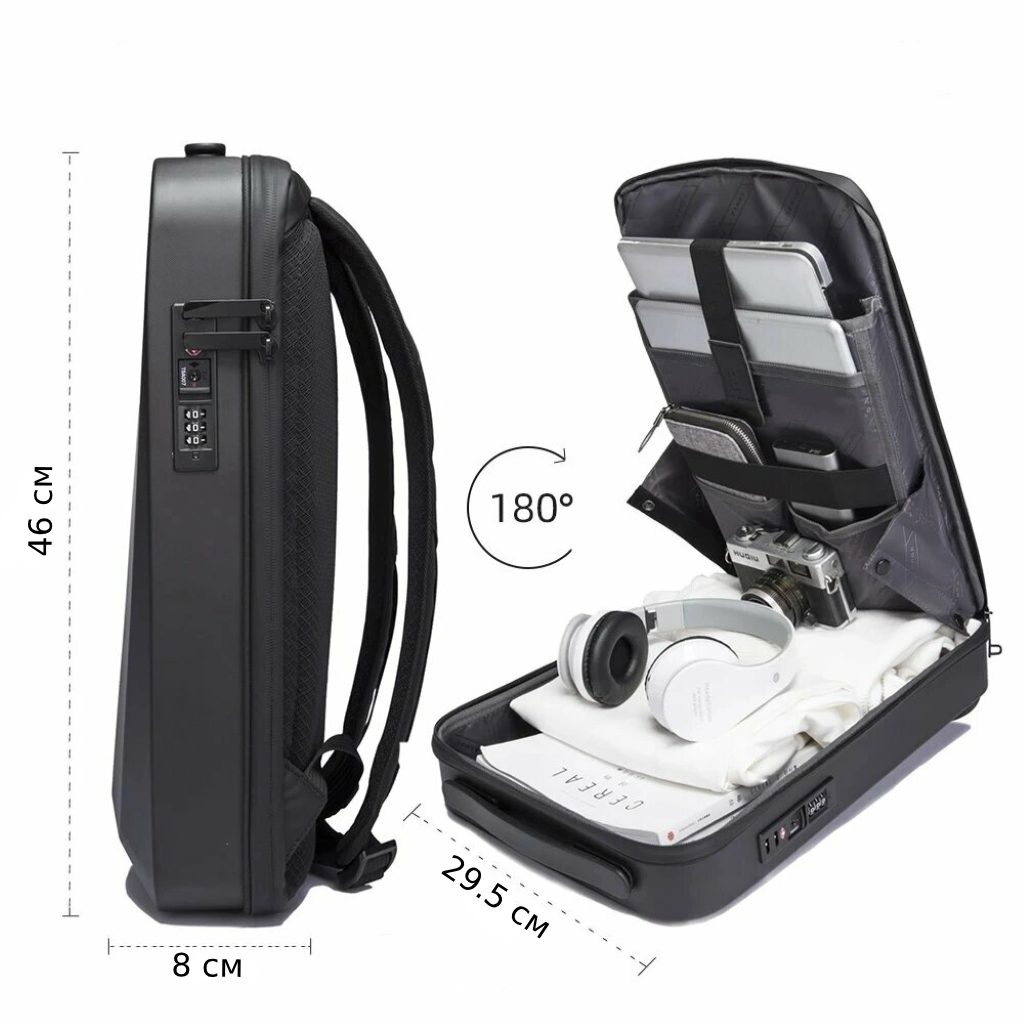 Рюкзак-дипломат ударостойкий и водоотталкивающий с кодовым замком черного цвета, под ноутбук и другие важные вещи. интересное: