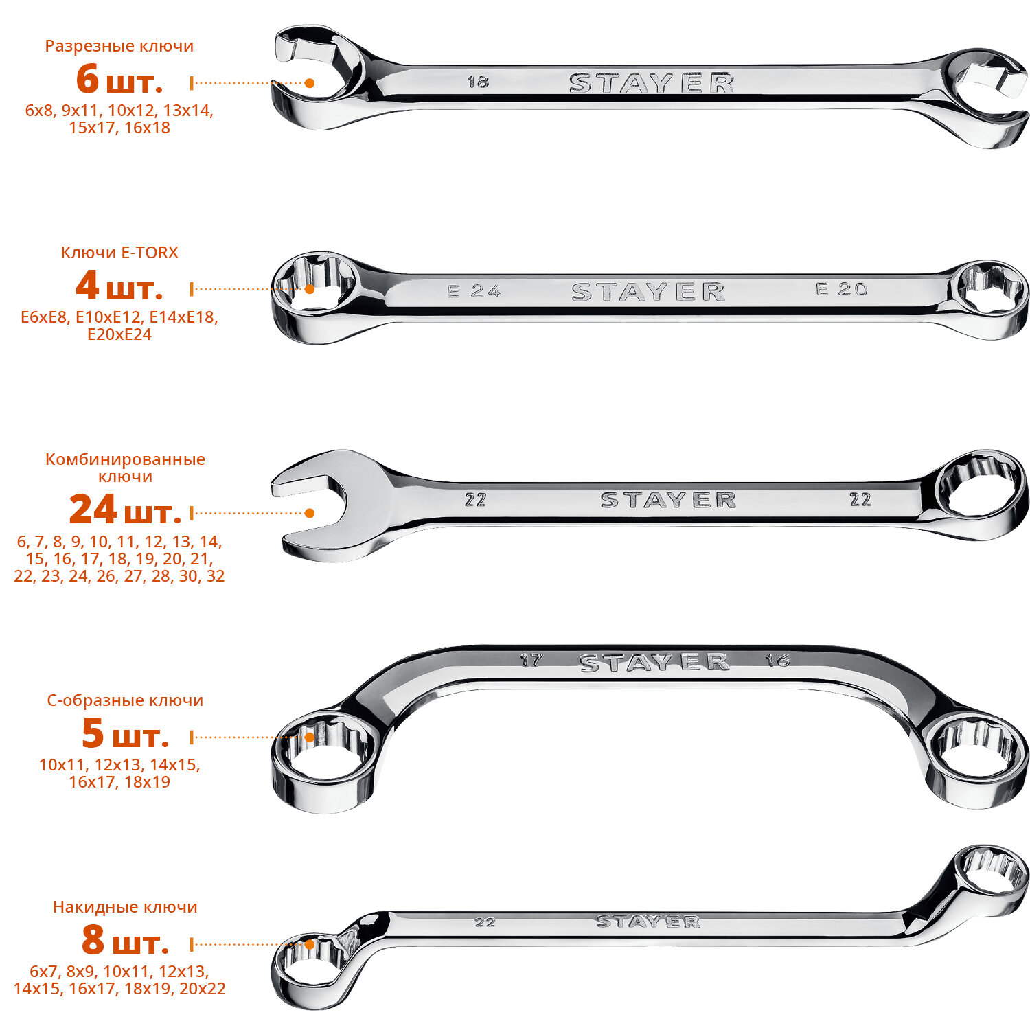 СохранитьНабор гаечных ключей универсальный 47 шт, 6 - 32 мм, STAYER HERCULES интересное: