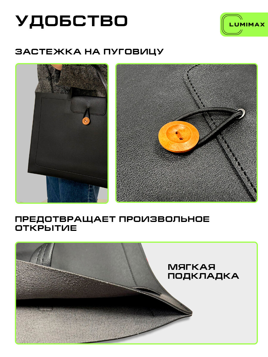 Сумка для ноутбука и документов до 16,1 дюймов, Макбука (MacBook), Huawei, Xiaomi, чёрная, мужская, женская