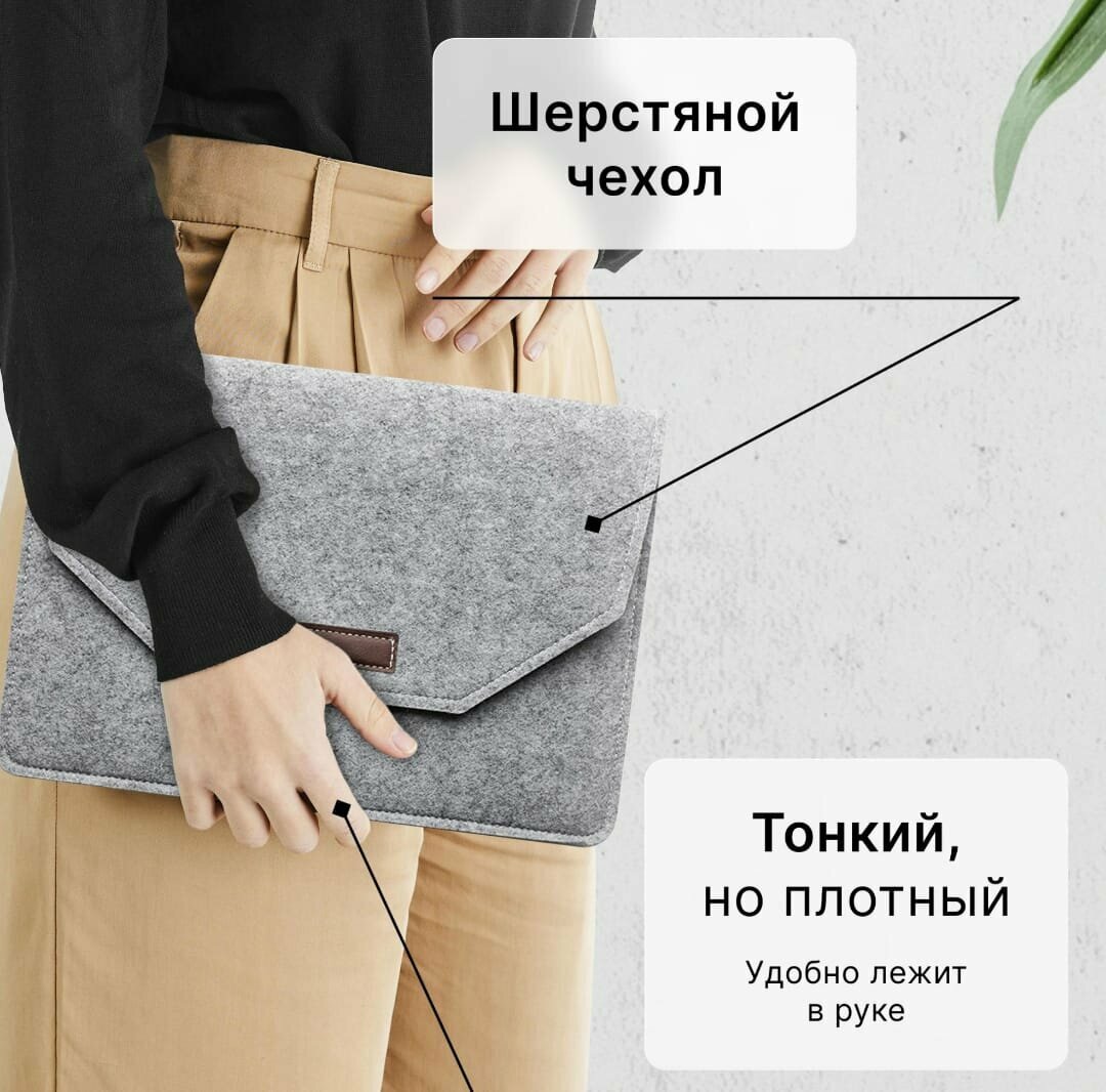 Сумка для ноутбука DOMOLOGIA 27x38 см, фетровая, с застежкой на липучке, серая интересное: