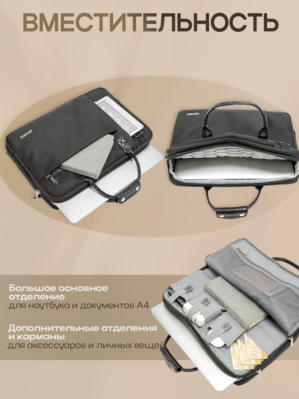 Сумка для ноутбука 15.6, 16 и 17 дюймов KINMAC с ремнем на плечо и множеством дополнительных кармашков (Черный) интересное: