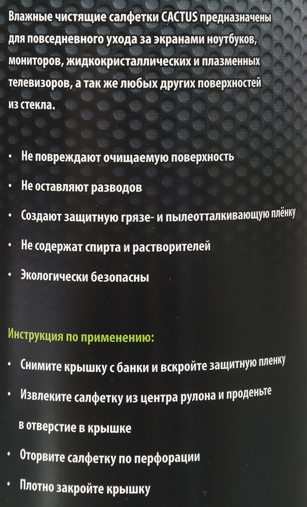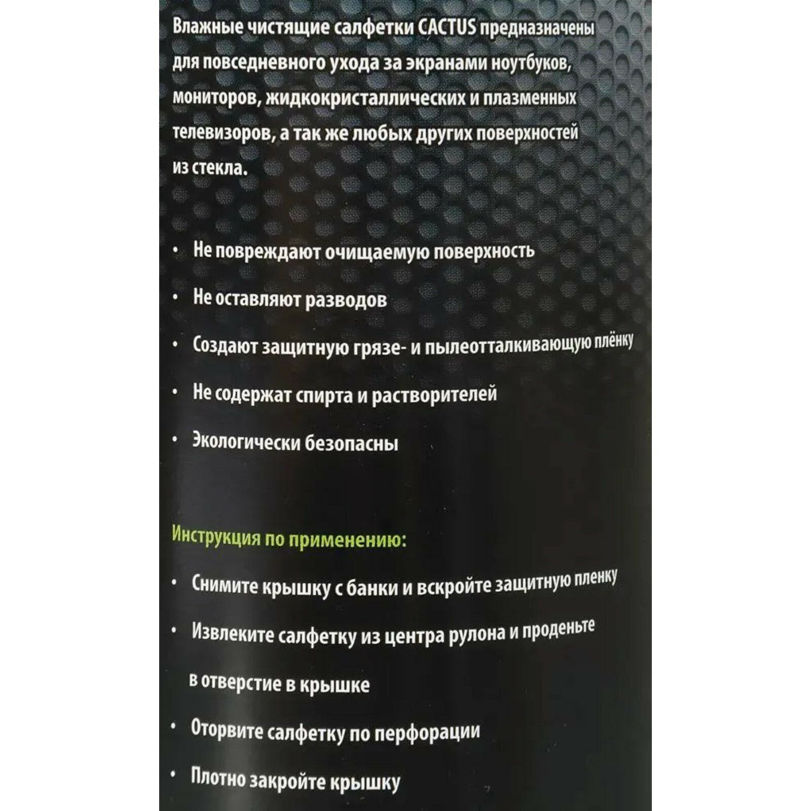 Салфетки для экранов и оптики Cactus CS-T1001 влажные, туба 100шт интересное: