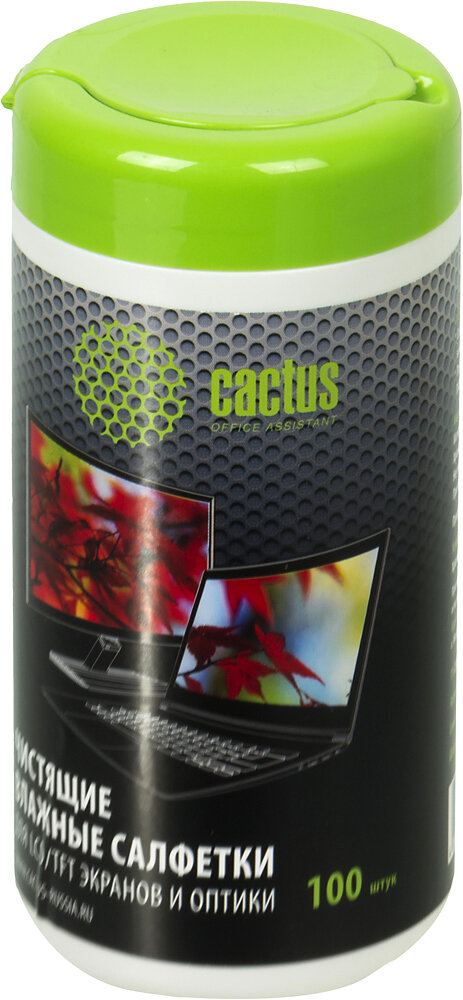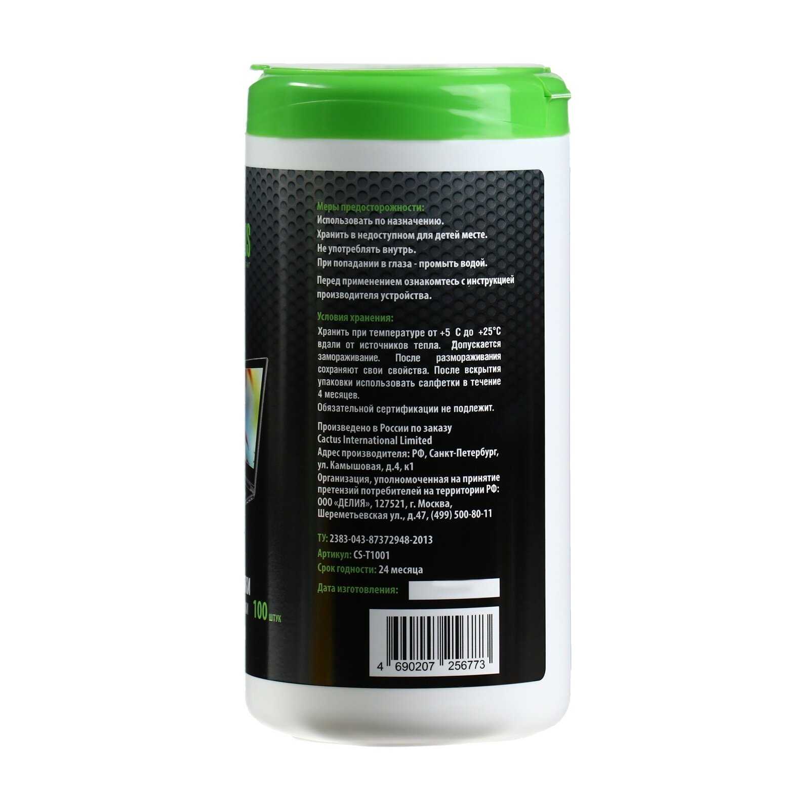 Купить Салфетки для экранов и оптики Cactus CS-T1001 влажные, туба 100шт