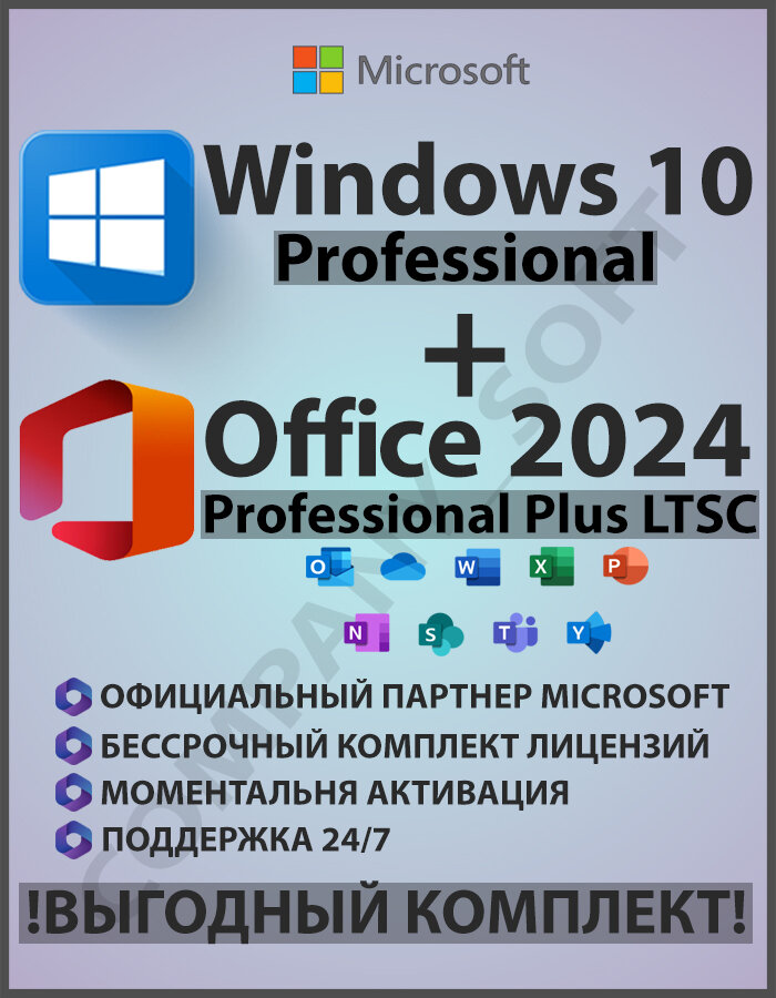 Купить Windows 10 Pro + Office 2024 Pro Plus Лицензия (Выгодный бессрочный Комплект)
