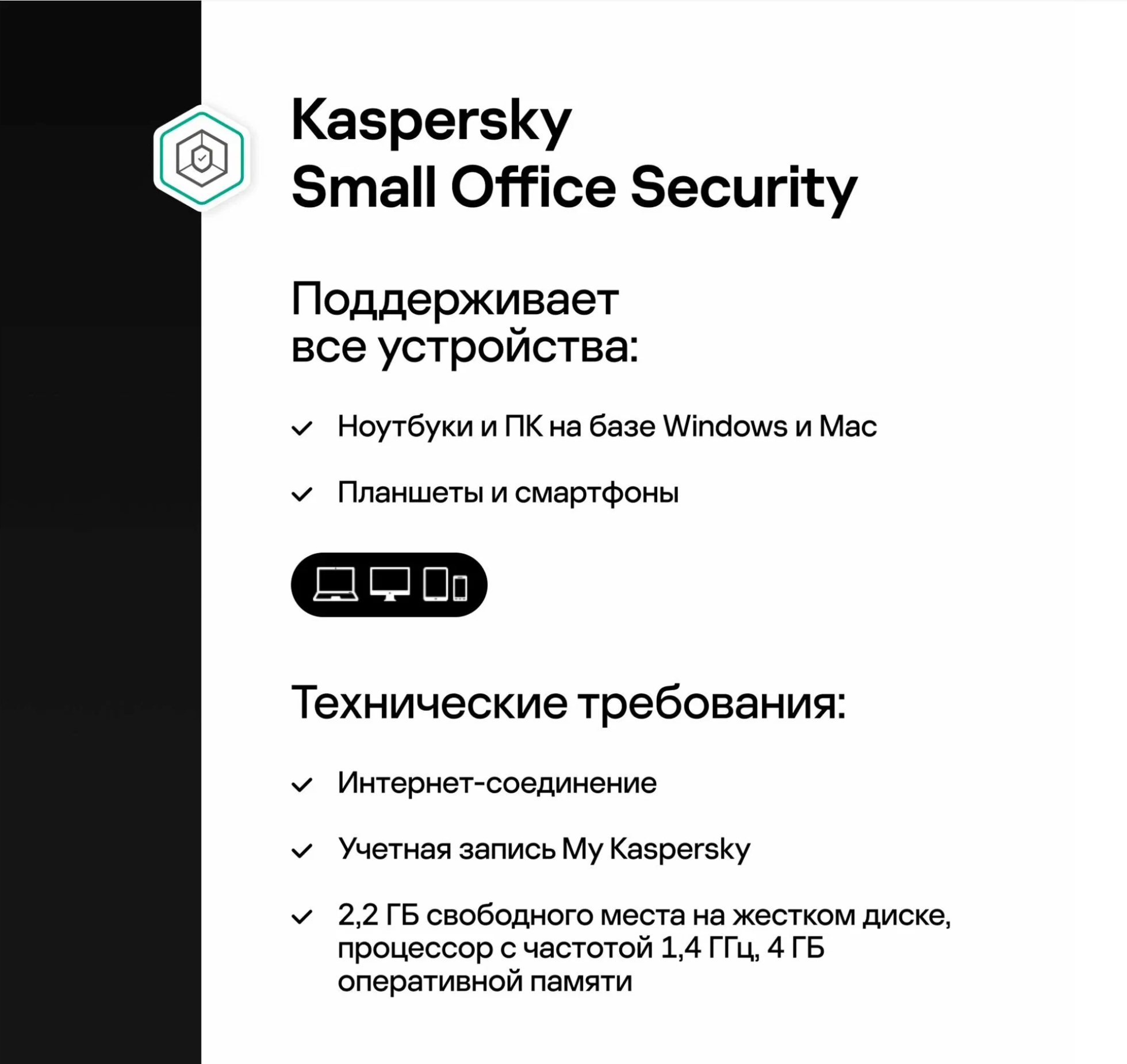 Kaspersky Small Office Security (10 компьютеров, 10 мобильных устройств, 1 файловый сервер, 1 год)