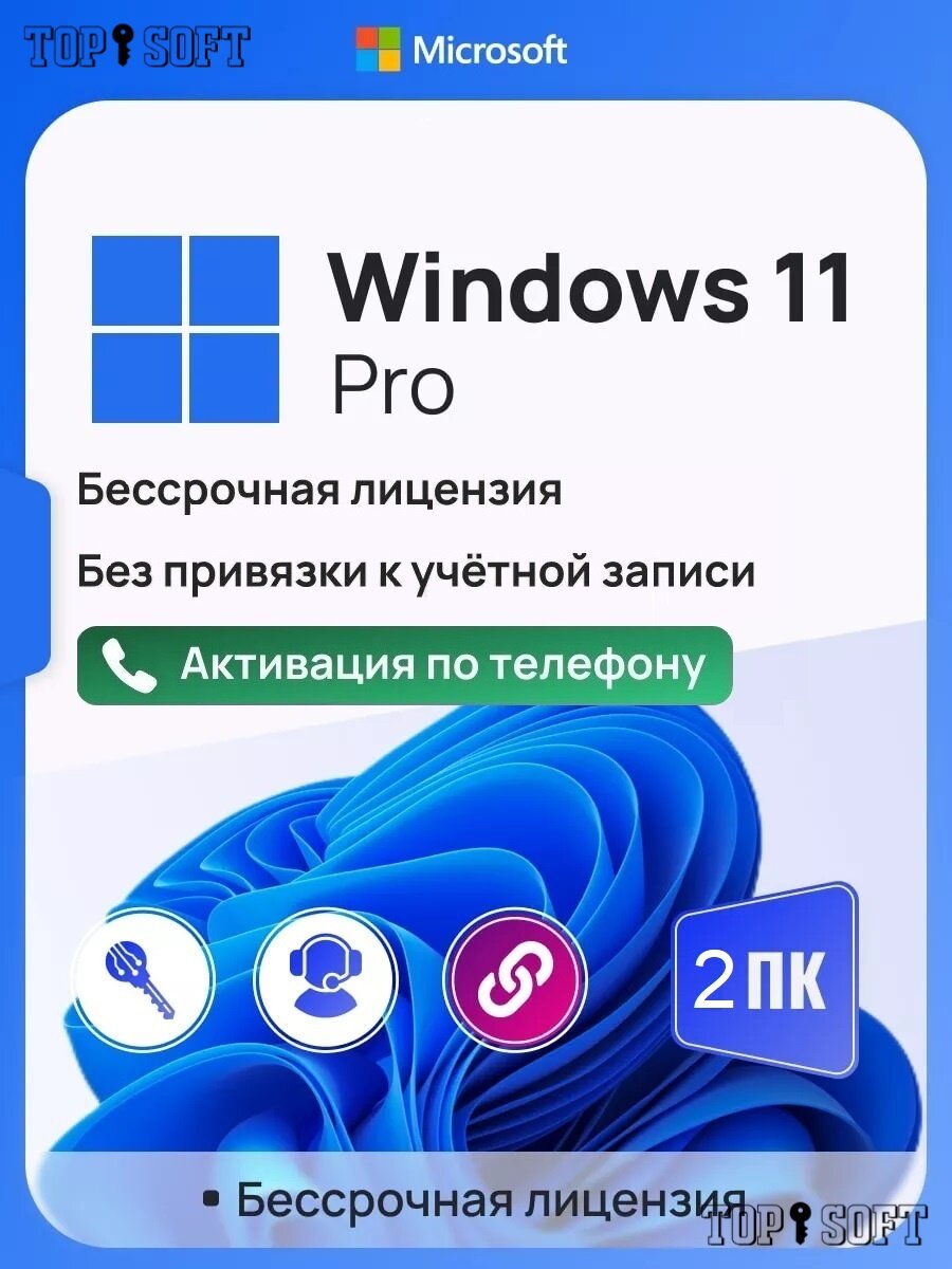 Ключ активации Windows 11 Pro ключ Microsoft (На 2 ПК, Русский язык, Бессрочная лицензия) интересное: