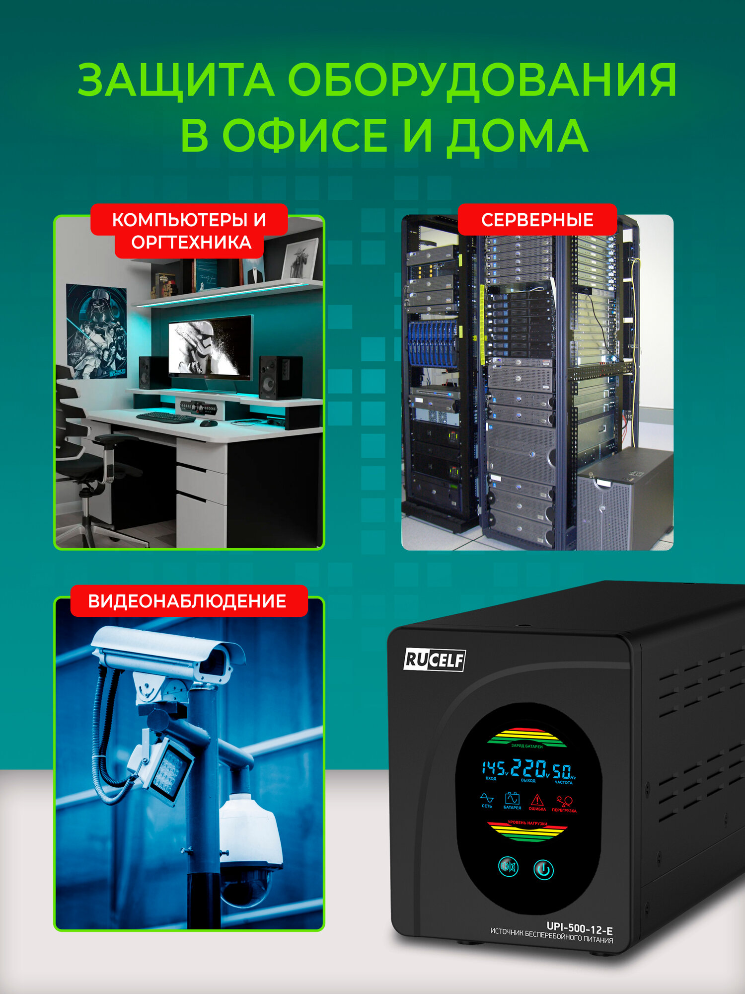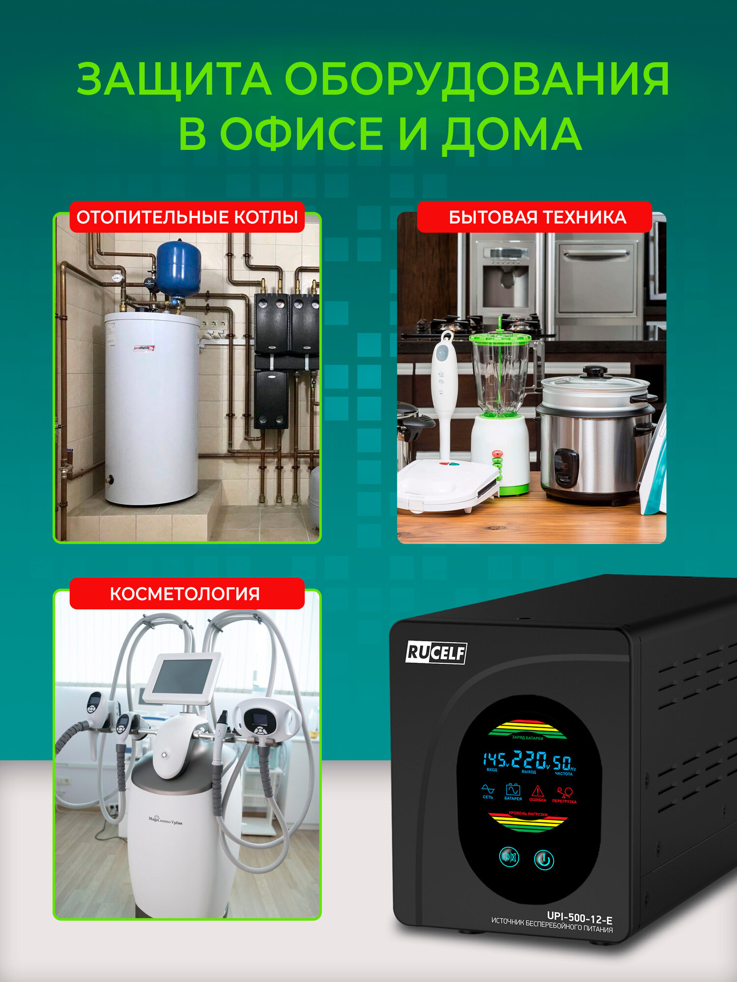 Купить Источник бесперебойного питания RUCELF UPI-500-12-E 500 ВА/300 Вт для газовых котлов и циркуляционных насосов (без АКБ)