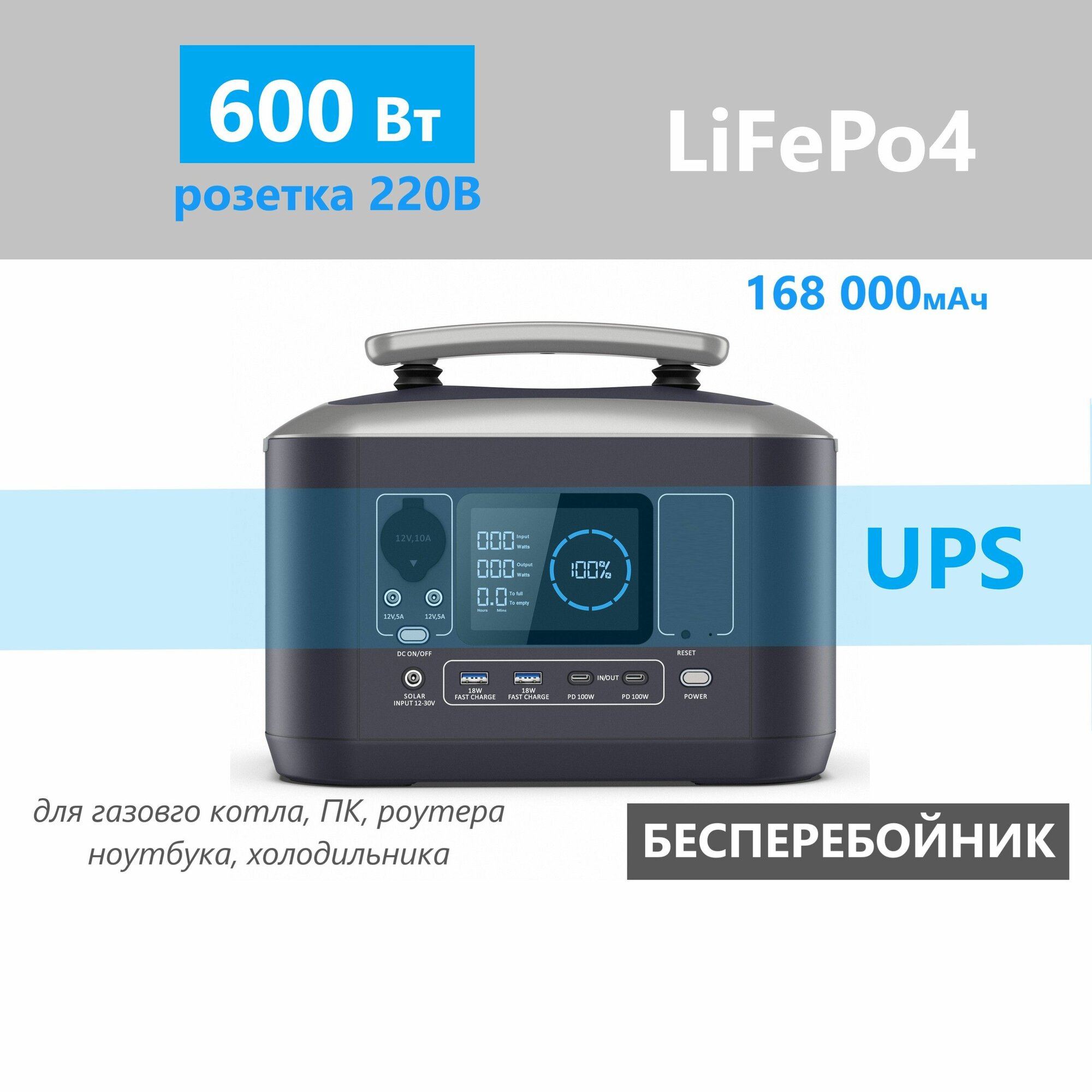 ИБП LiFePo4 бесперебойник розетка 220В 800Вт LFP, резервный аккумулятор, портативная электростанция 800w 160000мАч, зарядная станция 220 в для дома, дачи, газового котла, компьютера, роутера