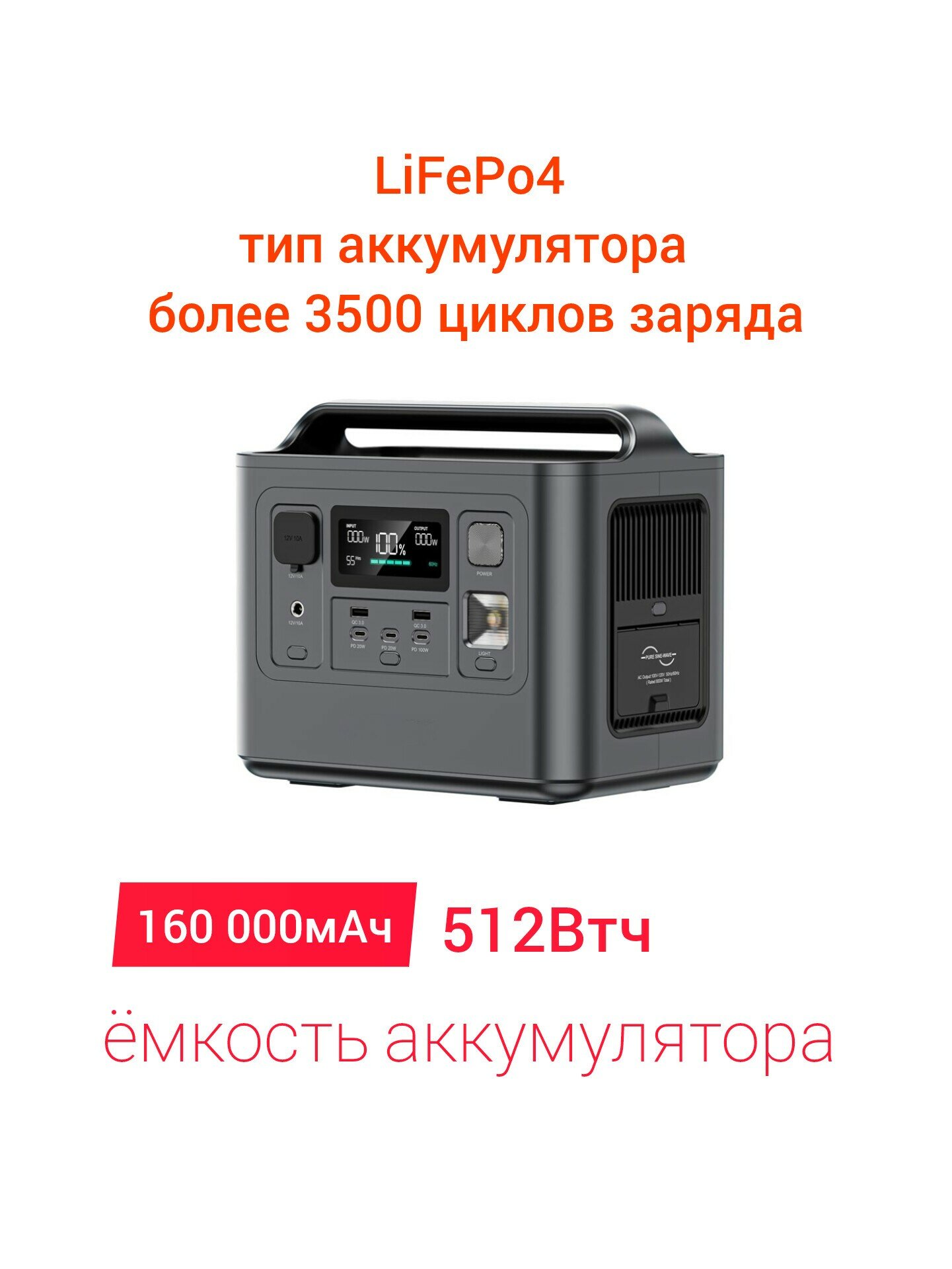 ИБП LiFePo4 портативная электростанция бесперебойник 220В 2400Вт розетка 2000Вт резервный аккумулятор зарядная станция 2кВт дома, газового котла отопления дачи, компьютера, роутера, видеонаблюдения