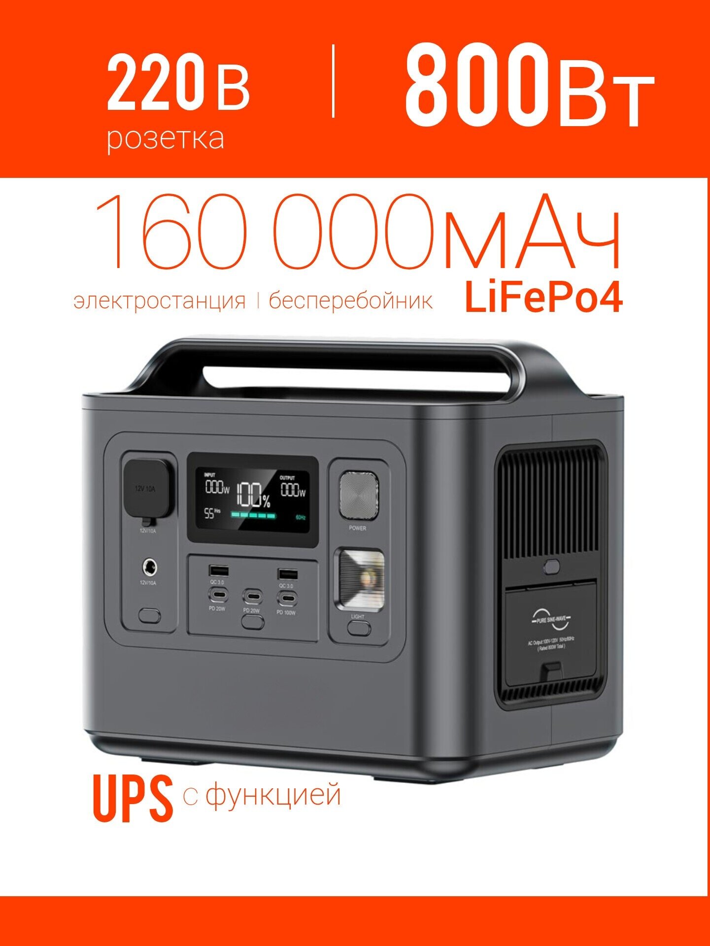 Купить ИБП LiFePo4 бесперебойник розетка 220В 800Вт LFP, резервный аккумулятор, портативная электростанция 800w 160000мАч, зарядная станция 220 в для дома, дачи, газового котла, компьютера, роутера