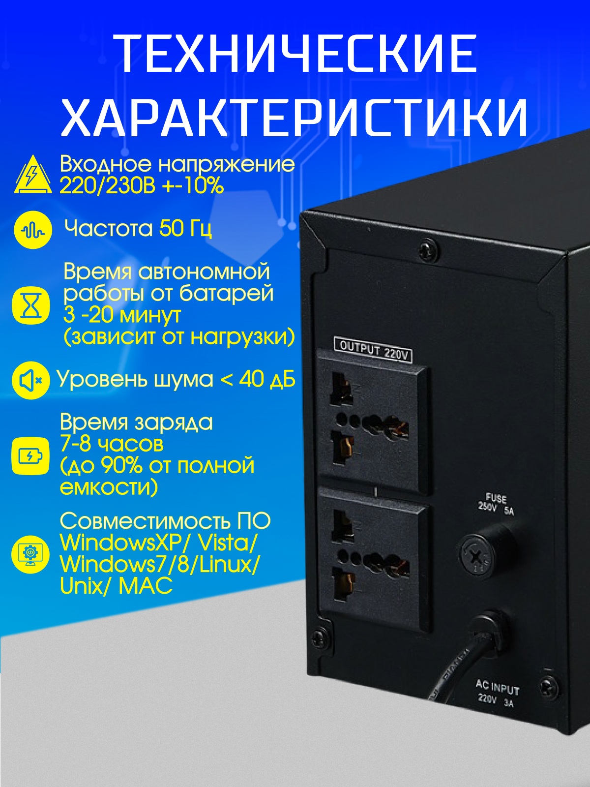 Ниже Вы можете прочитать отзывы на ИБП для компьютера пк 300/500 Вт холодный старт, цвет черный, ознакомится с подробными характеристиками, посмотреть интересные обзоры и фотографии на ИБП для компьютера пк 300/500 Вт холодный старт, цвет черный.