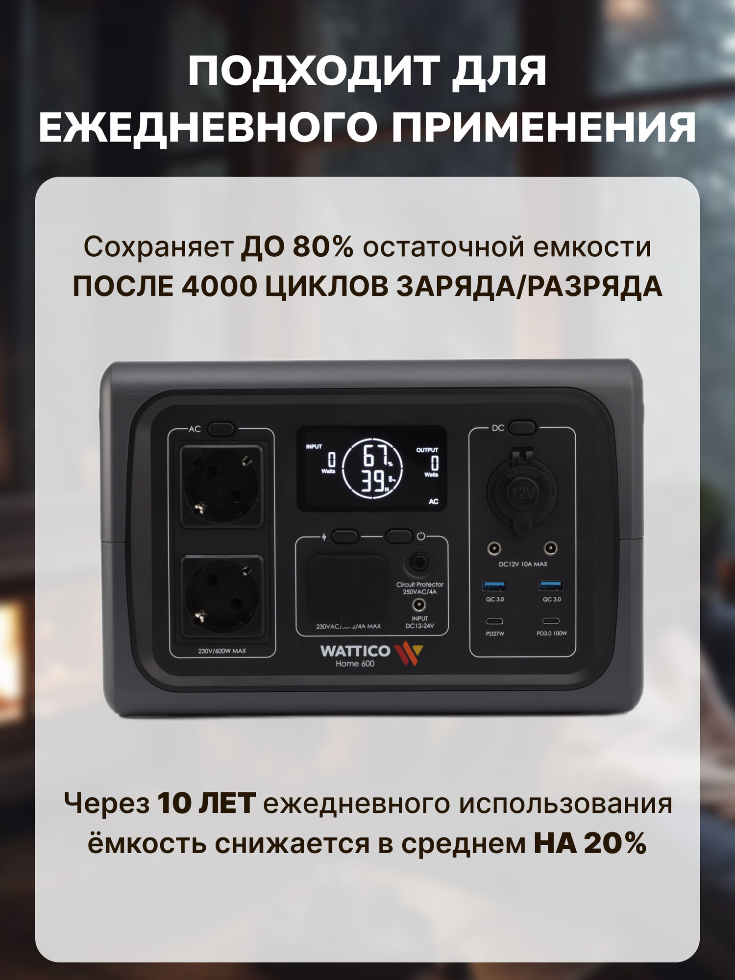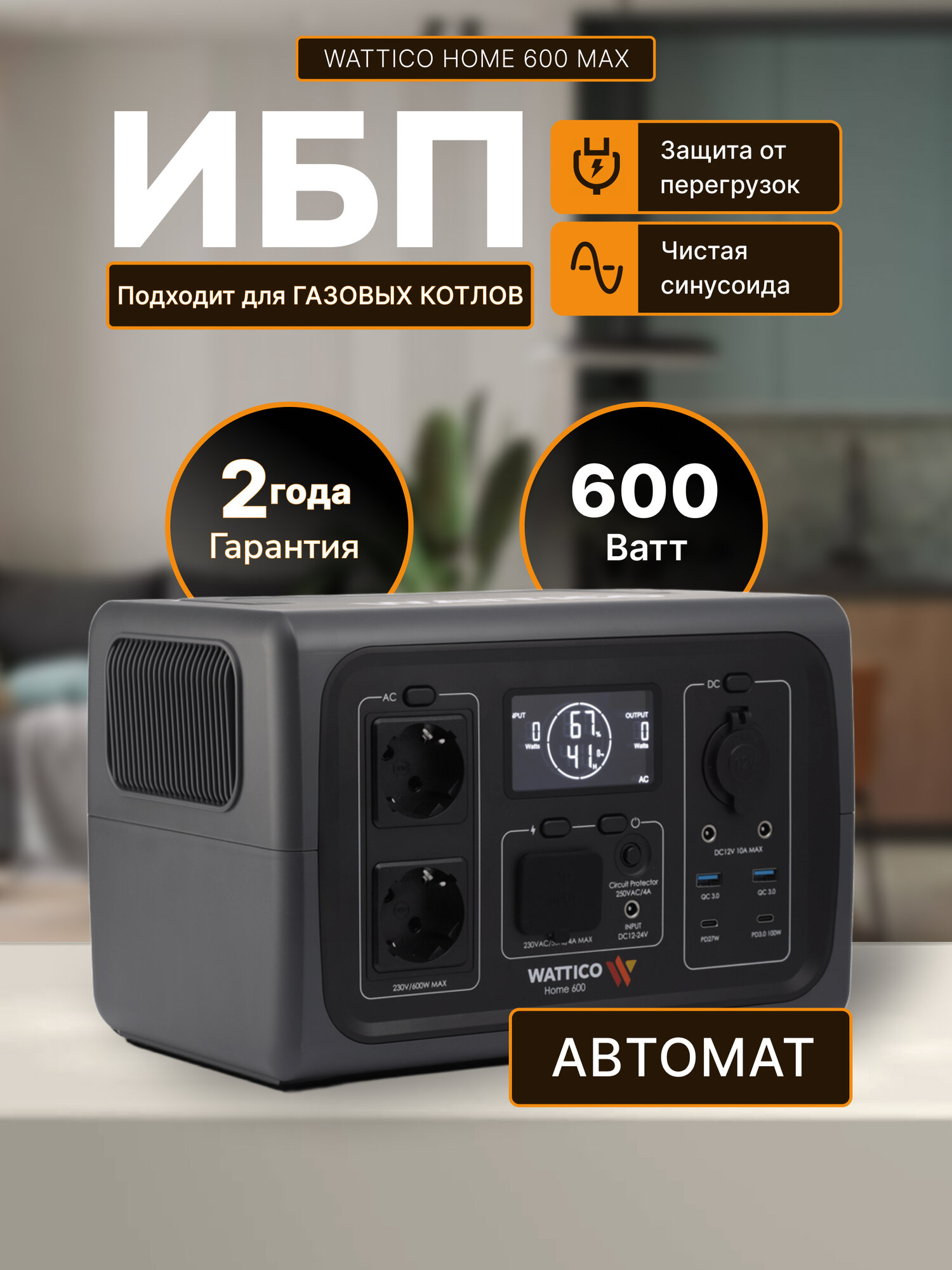 Портативная электростанция c функцией ИБП Wattico Home 600 160 000 мАч бесперебойник для дома, дачи, котла и насоса интересное: