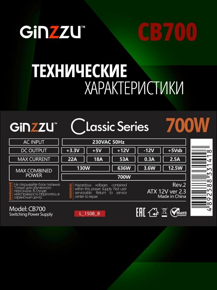 Ниже Вы можете прочитать отзывы на Блок питания Ginzzu 700W (CB700) ATX,12CM, (Белый) 20+4p, CPU(4+4), 2 PCI-E(6+2), 6*SATA, 3*IDE, кабель питания, ознакомится с подробными характеристиками, посмотреть интересные обзоры и фотографии на Блок питания Ginzzu 700W (CB700) ATX,12CM, (Белый) 20+4p, CPU(4+4), 2 PCI-E(6+2), 6*SATA, 3*IDE, кабель питания.