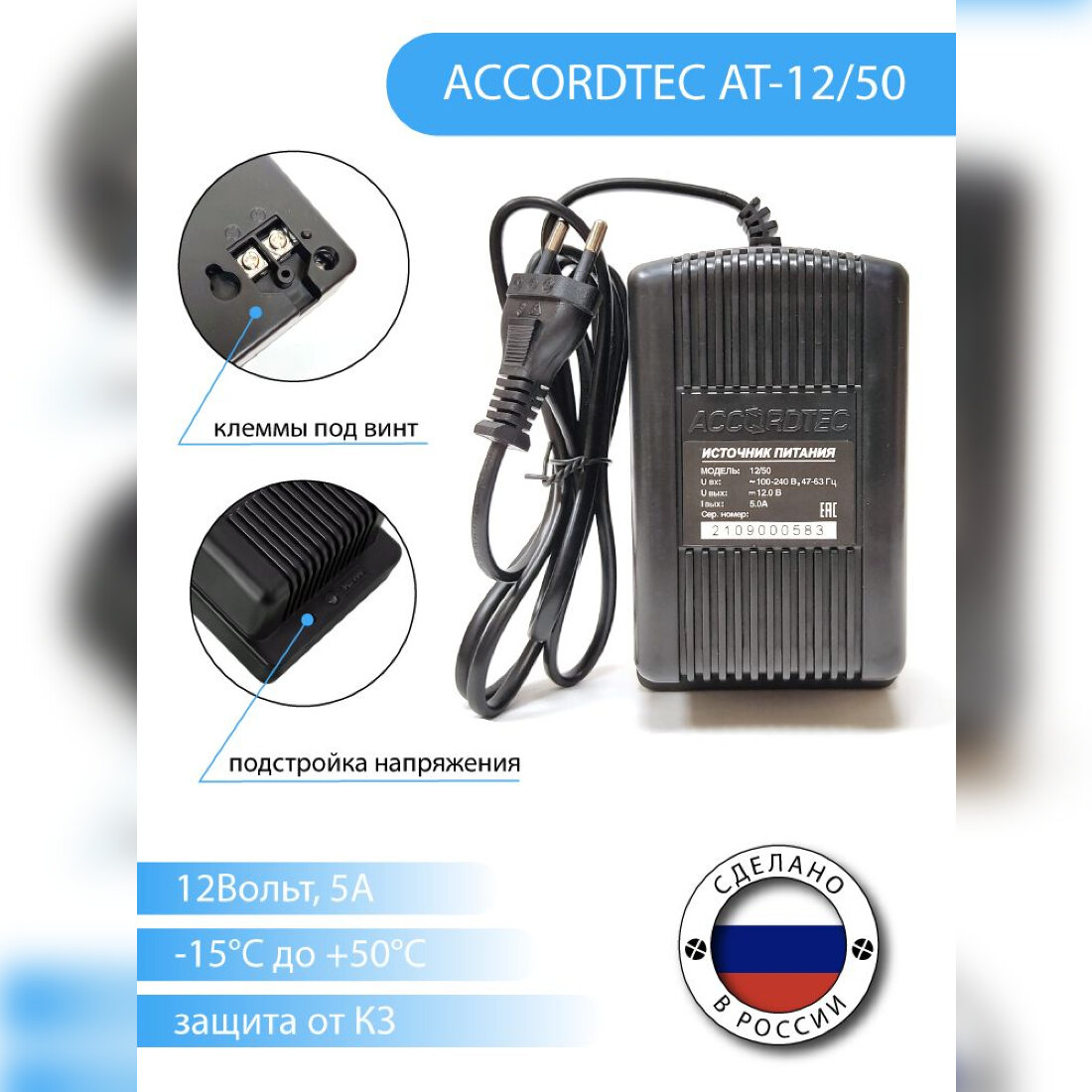 Купить Блок стабилизированного питания AccordTec AccordTec АТ-12/50, Iвых = 5A (ном.) Uвх 110-250 В AC, Uвых DC 12,6 В