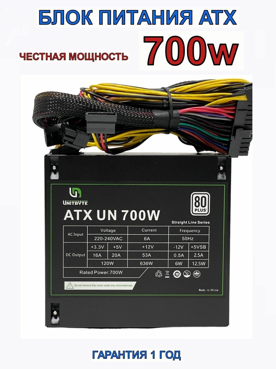 Блок питания для ПК ATX UN-700W интересное: