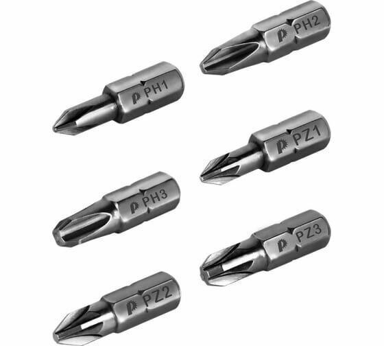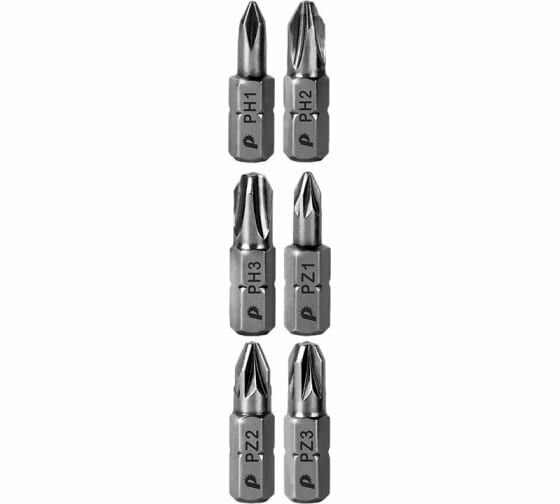 Набор бит "Профи" 6шт PH1,2,3; PZ1,2,3 x 25мм, блистер