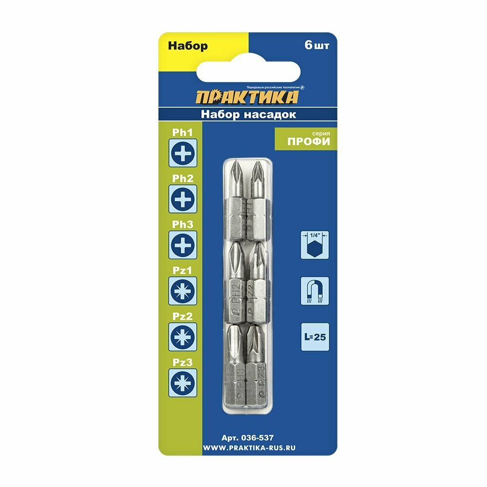 Купить Набор бит "Профи" 6шт PH1,2,3; PZ1,2,3 x 25мм, блистер ПРАКТИКА 036-537