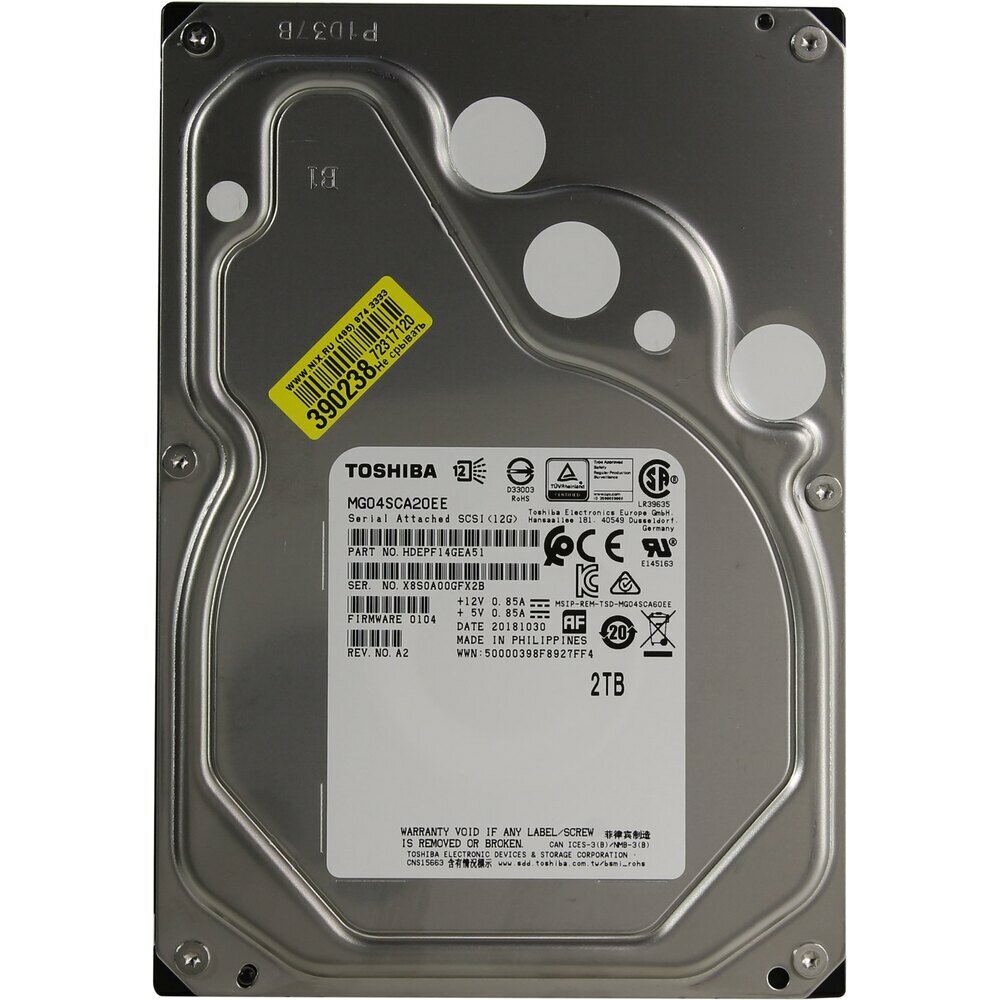 Жесткий диск Toshiba 2TB, SAS, 3.5" MG04SCA20EE 7200 rpm 12Gbit/s 128Mb интересное: