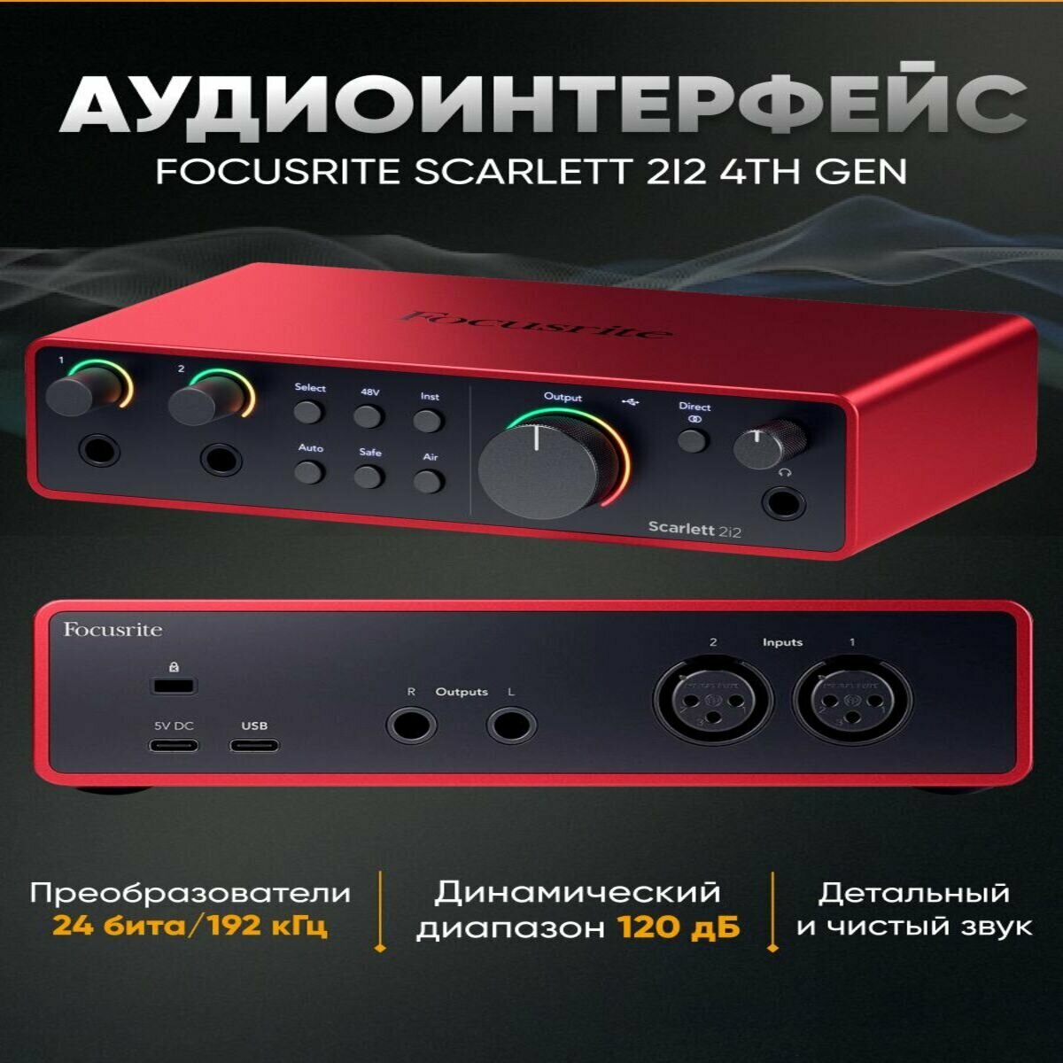 Звуковая карта Focusrite Scarlett 2i2, 24 bit, USB Type-C, с фантомным питанием интересное: