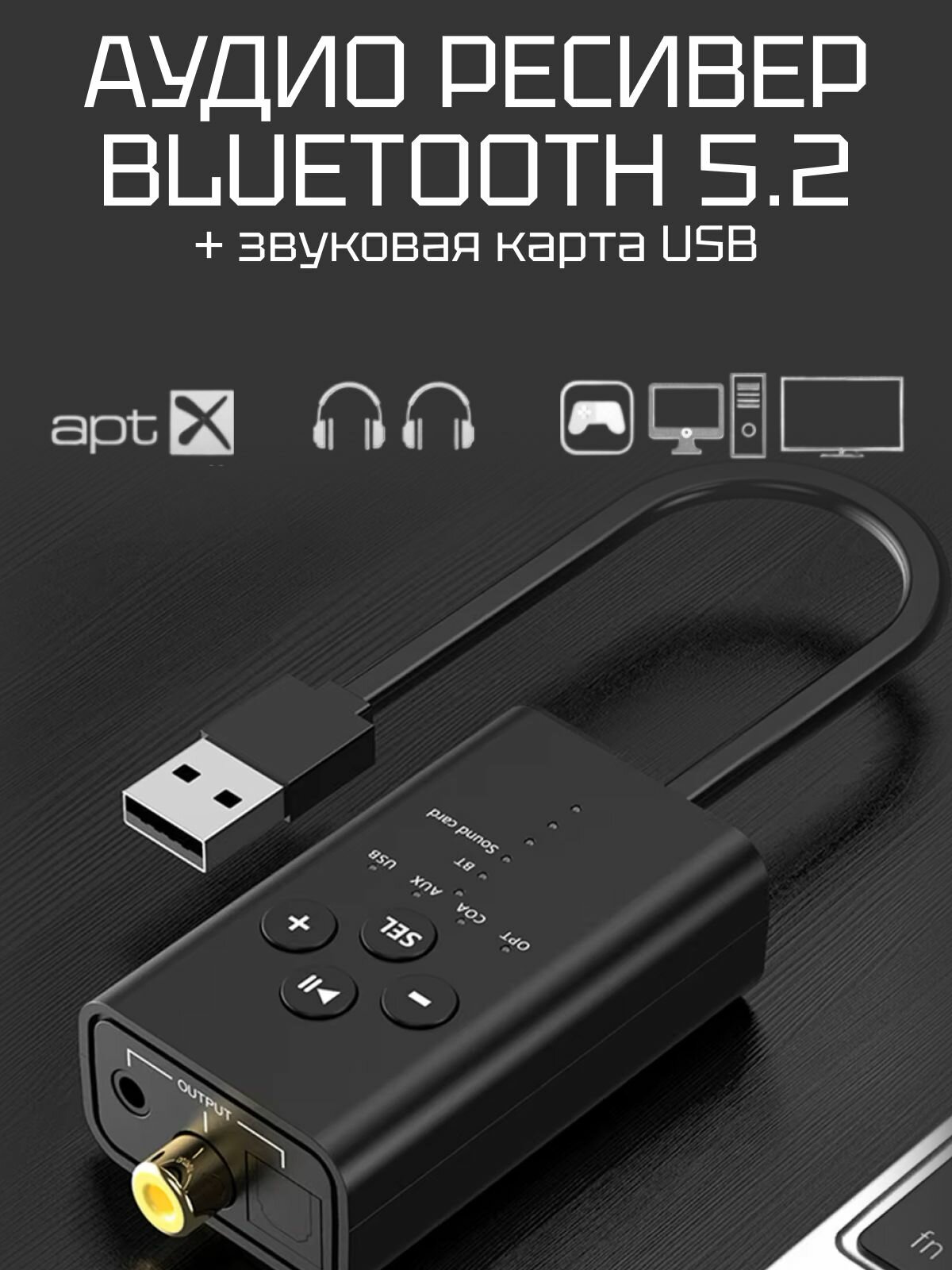 Аудио-передатчик Bluetooth 5.2/ USB 3,5 мм AUX оптоволоконный коаксиальный беспроводной адаптер, звуковая карта usb. интересное: