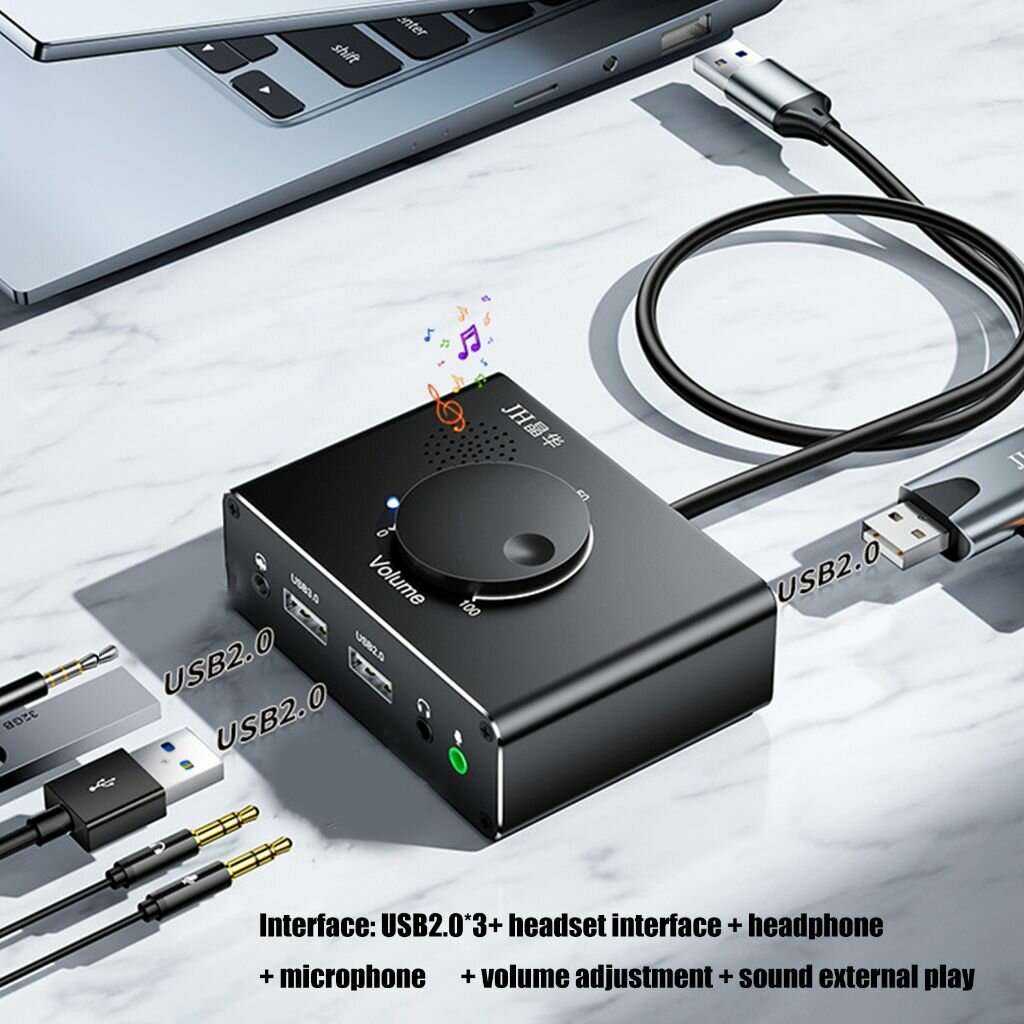 Купить USB-звуковая карта, внешняя звуковая карта с концентратором регулировки громкости, наушники, микрофон, порт 3,5 мм, эквалайзеры для ПК,
