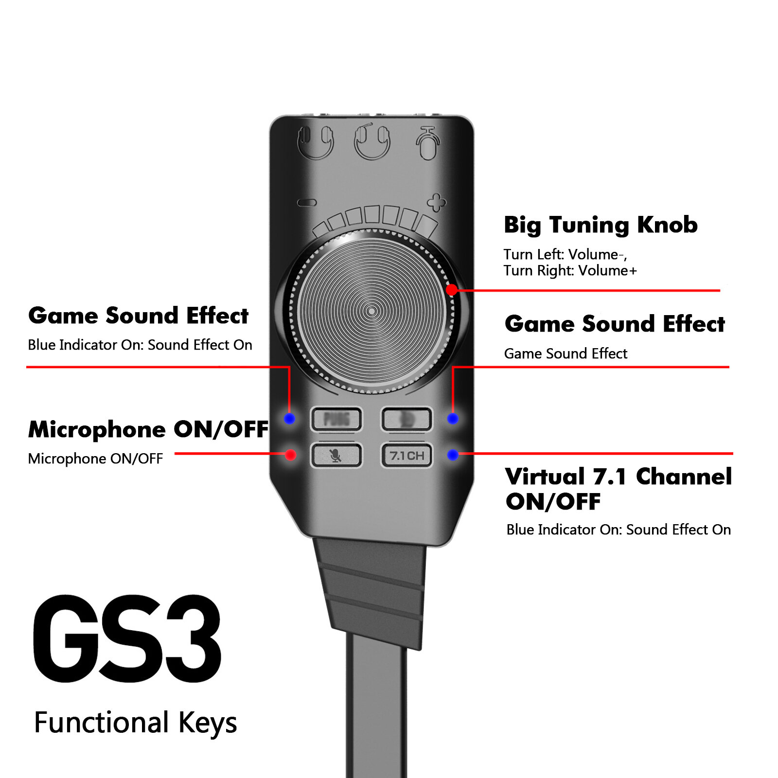 GS3 USB 2.0 Внешняя звуковая карта Виртуальный 7.1-канальный адаптер звуковой интересное: