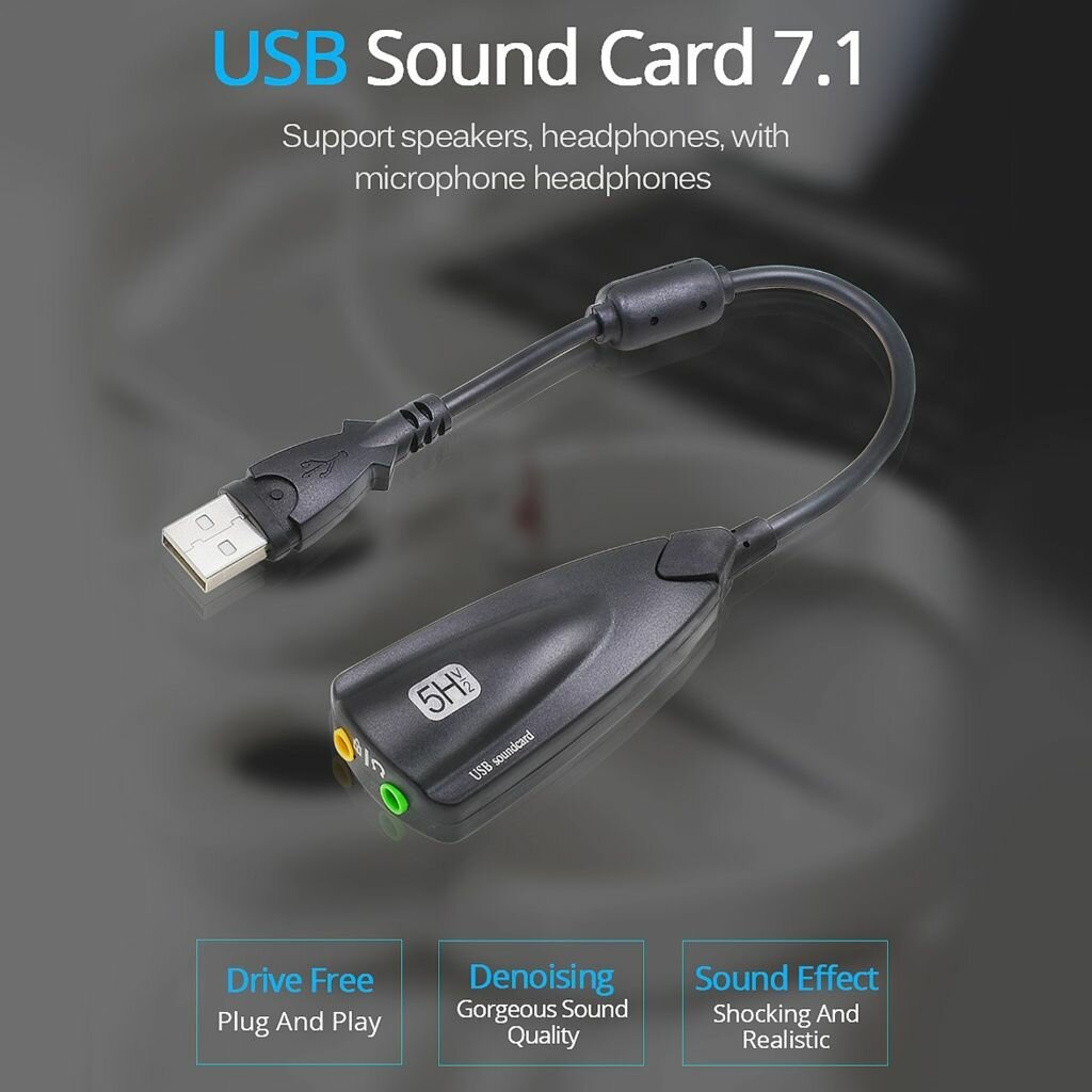 Внешняя звуковая карта USB analog 7.1 для настольного компьютера ноутбука-черный интересное: