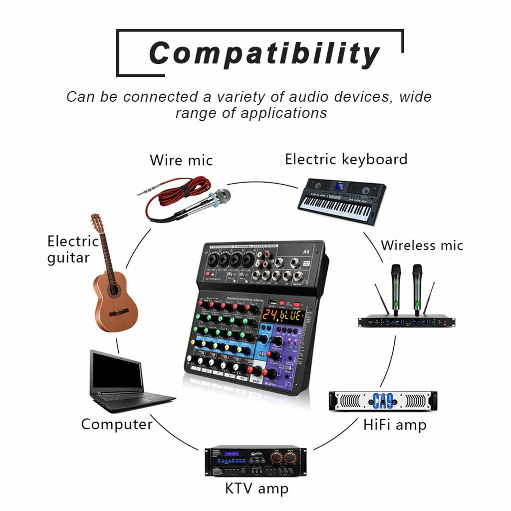 Микшер 6-канальный для прямой трансляции звуковая карта "все в одном"-Европейский стандарт Английский интересное:
