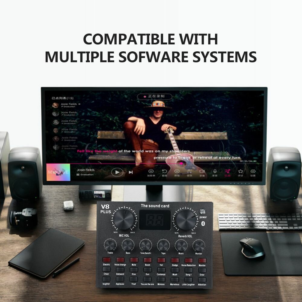 Купить Звуковая карта V8 Plus Live с аудиокабелем USB-кабель Звуковые эффекты аккомпанемента