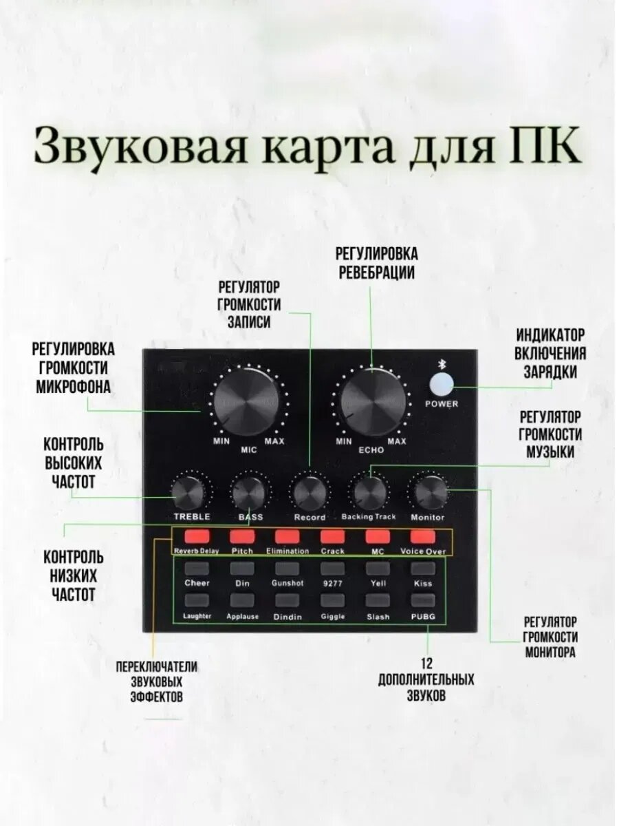 Звуковая карта внешняя MyPads для компьютера, внешний аудиоинтерфейс совместим со всеми типами устройств настройка голоса, эхо