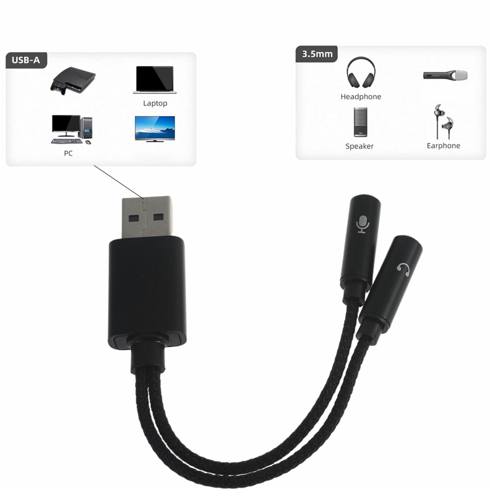 Купить Компьютер к аудиокабелю USB к звуковой карте гарнитуры 3,5 мм-черный