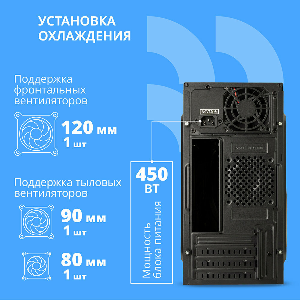 Cbr Корпус Корпус mATX Minitower MX10, c БП PSU-ATX450-08EC 450W 80mm , 2 USB 2.0, HD Audio+Mic, Black PCC-MATX-MX10-450W2 интересное: