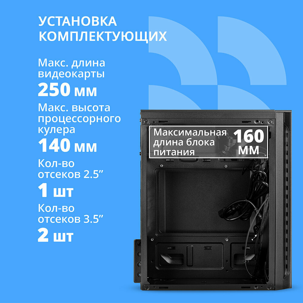 Купить Cbr Корпус Корпус mATX Minitower MX10, c БП PSU-ATX450-08EC 450W 80mm , 2 USB 2.0, HD Audio+Mic, Black PCC-MATX-MX10-450W2