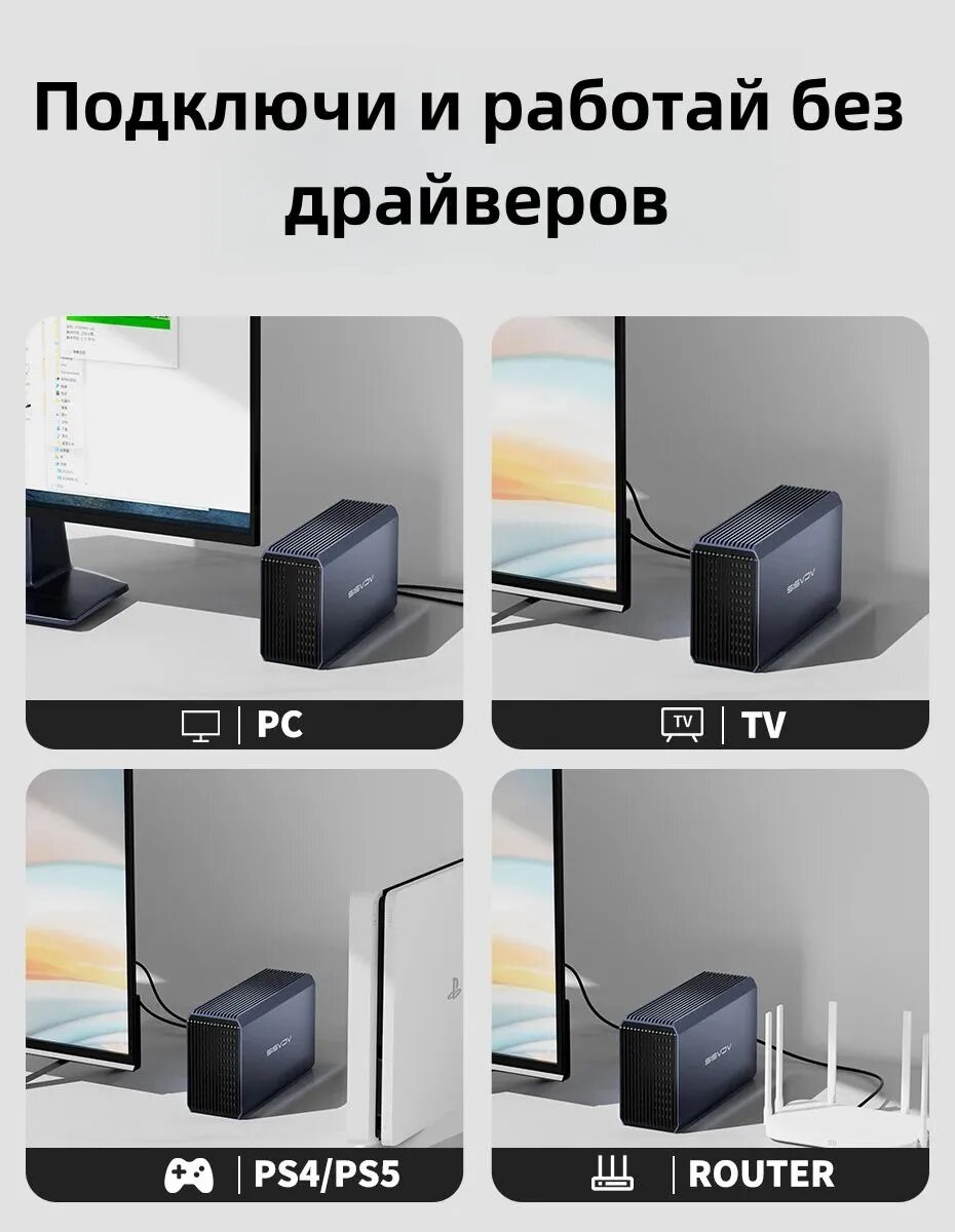Внешний RAID-корпус ACASIS EC-7352, алюминиевый сплав, 48TB, 2 отсеки, серый интересное: