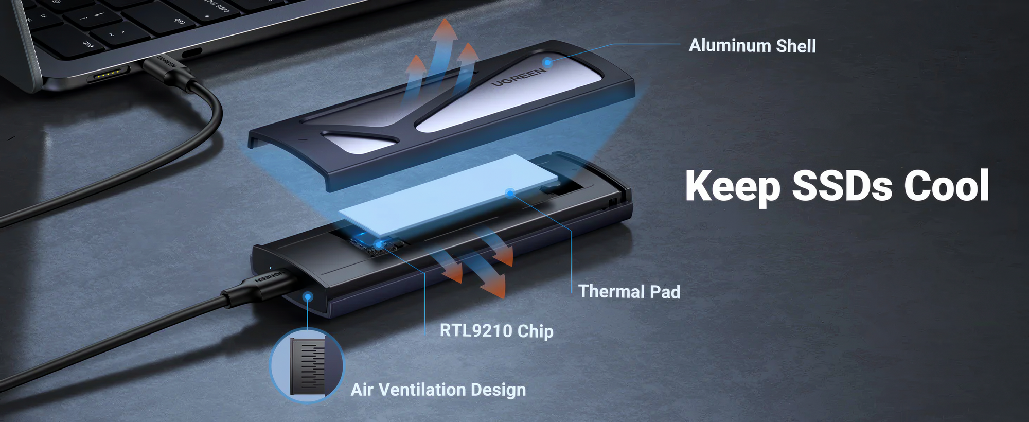 Бокс для накопителей UGreen CM578 M.2 SATA/NVMe SSD (15509), 10 Гбит/с, синий интересное: