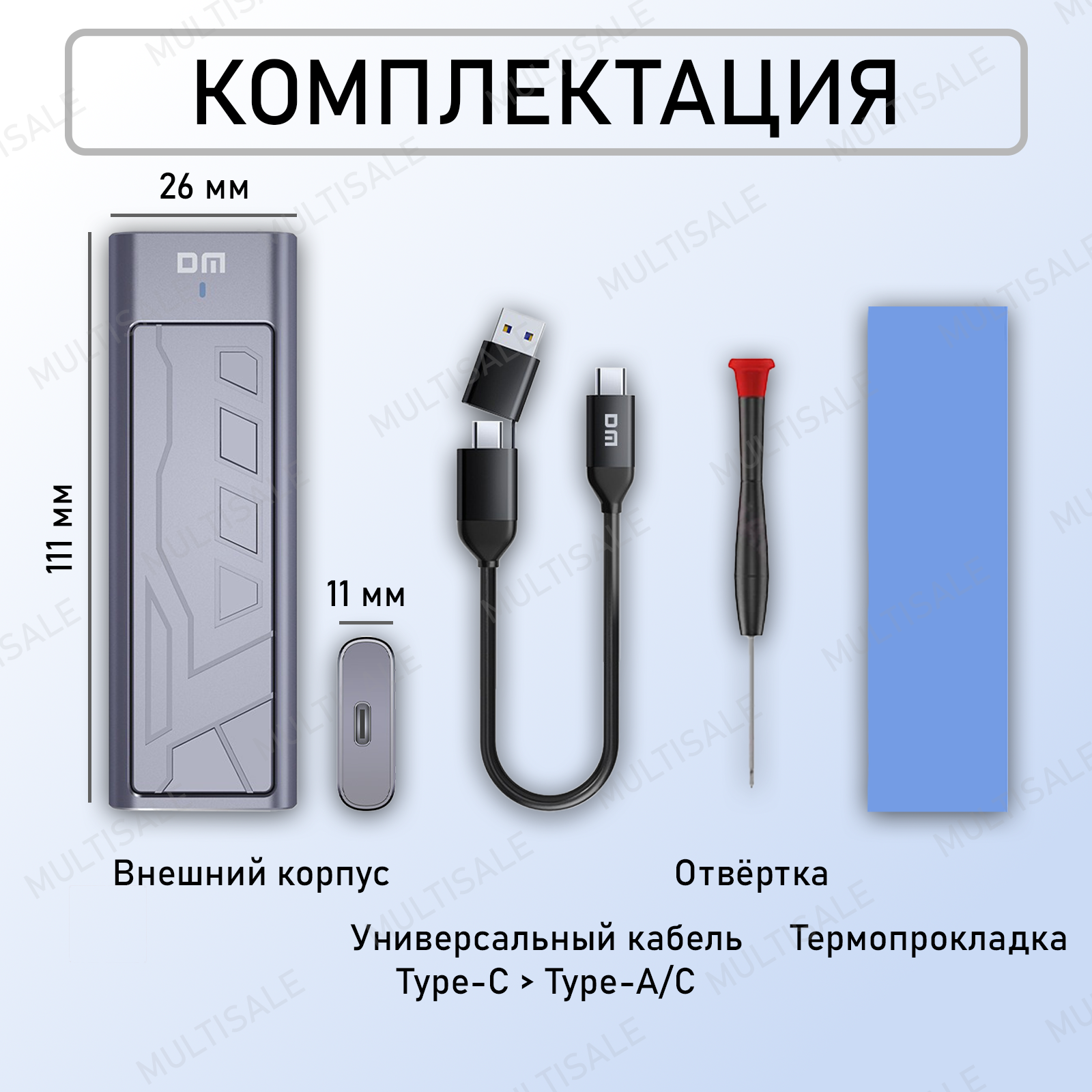 Купить Быстрый универсальный внешний корпус DM Life HD2000 для дисков M.2 NVMe и SATA, USB Type-C 3.2 Gen 2x2 20 Гбит/с