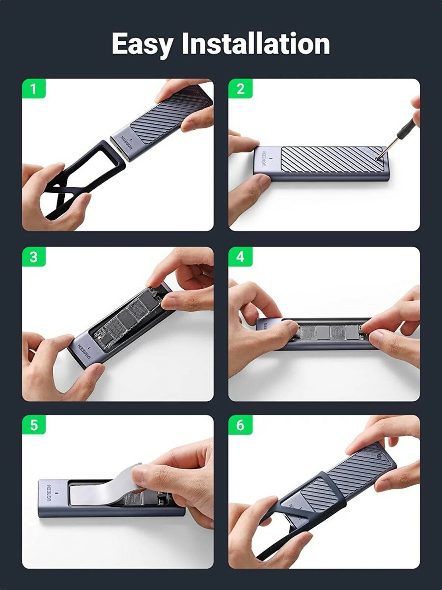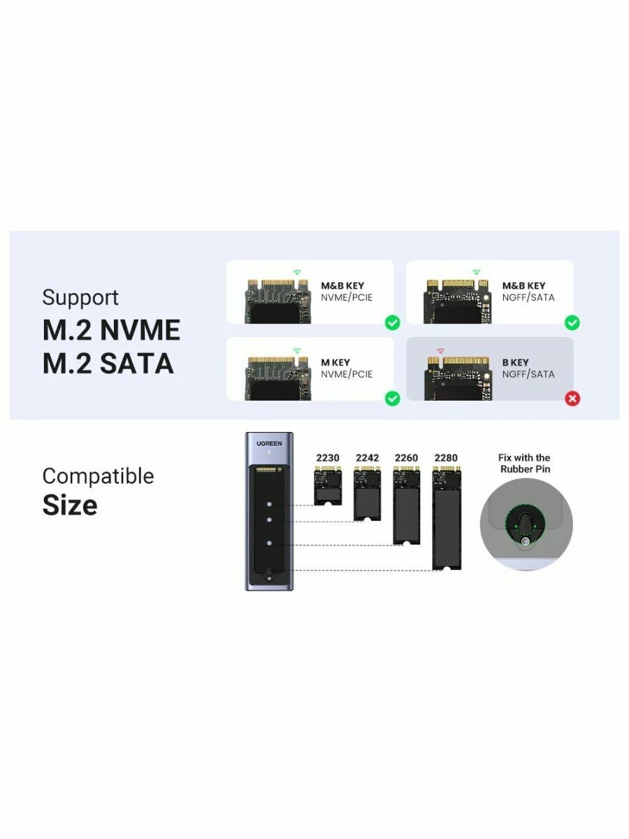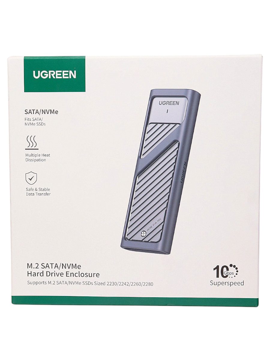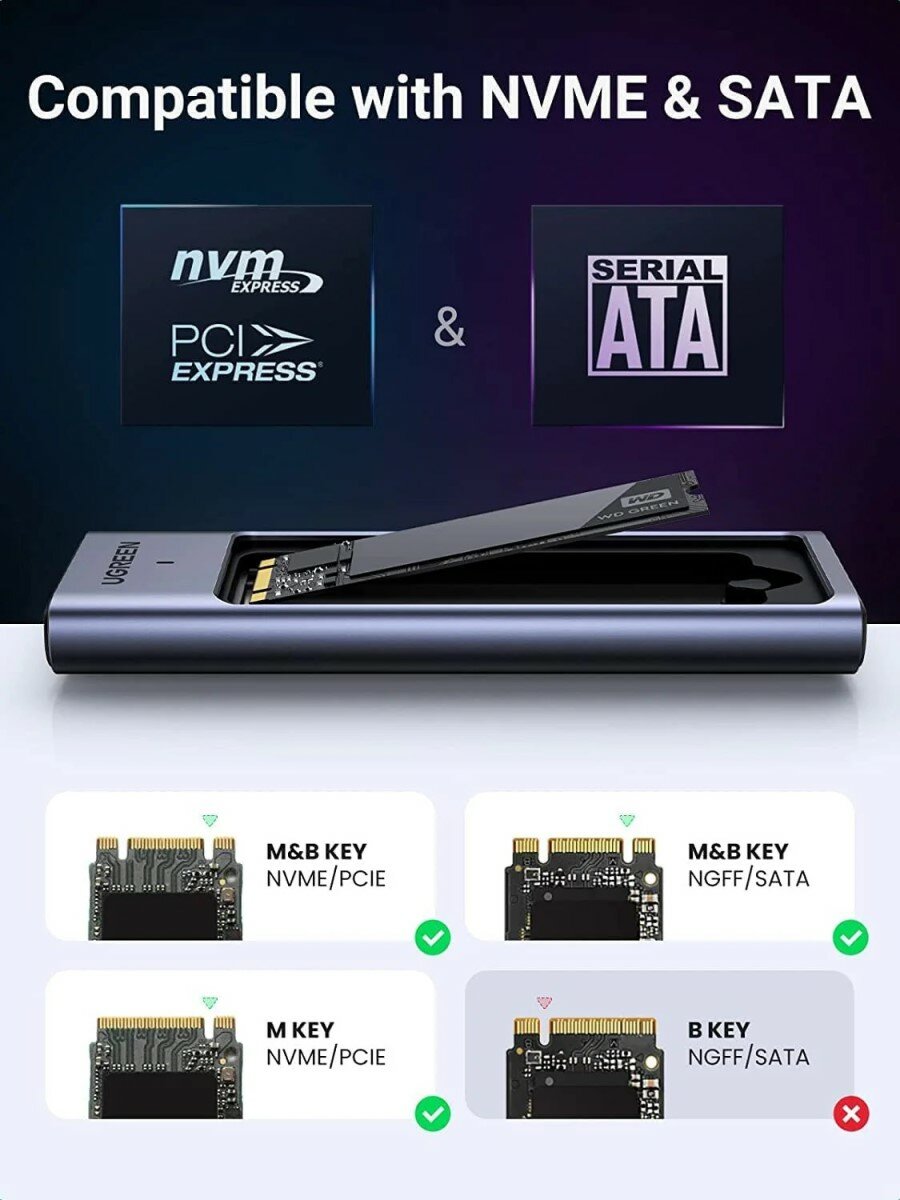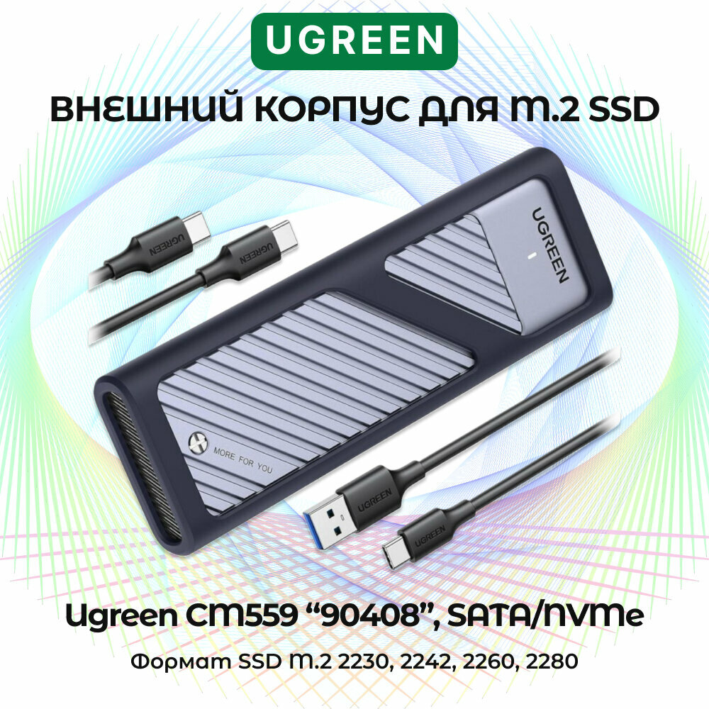 Бокс для жесткого диска Ugreen CM559 (M.2 NVMe and SATA) серый (90408) интересное: