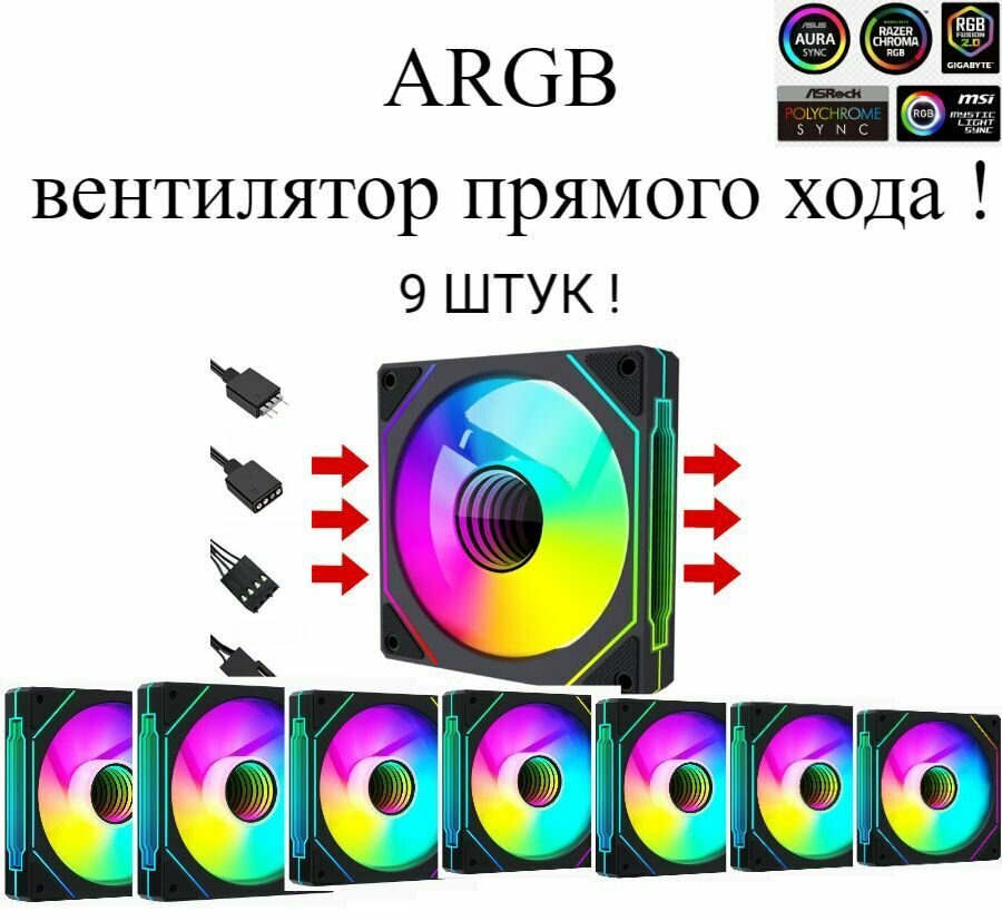 ARGB вентилятор / кулер для корпуса с регулируемой подсветкой! прямой хода 9шт ! интересное: