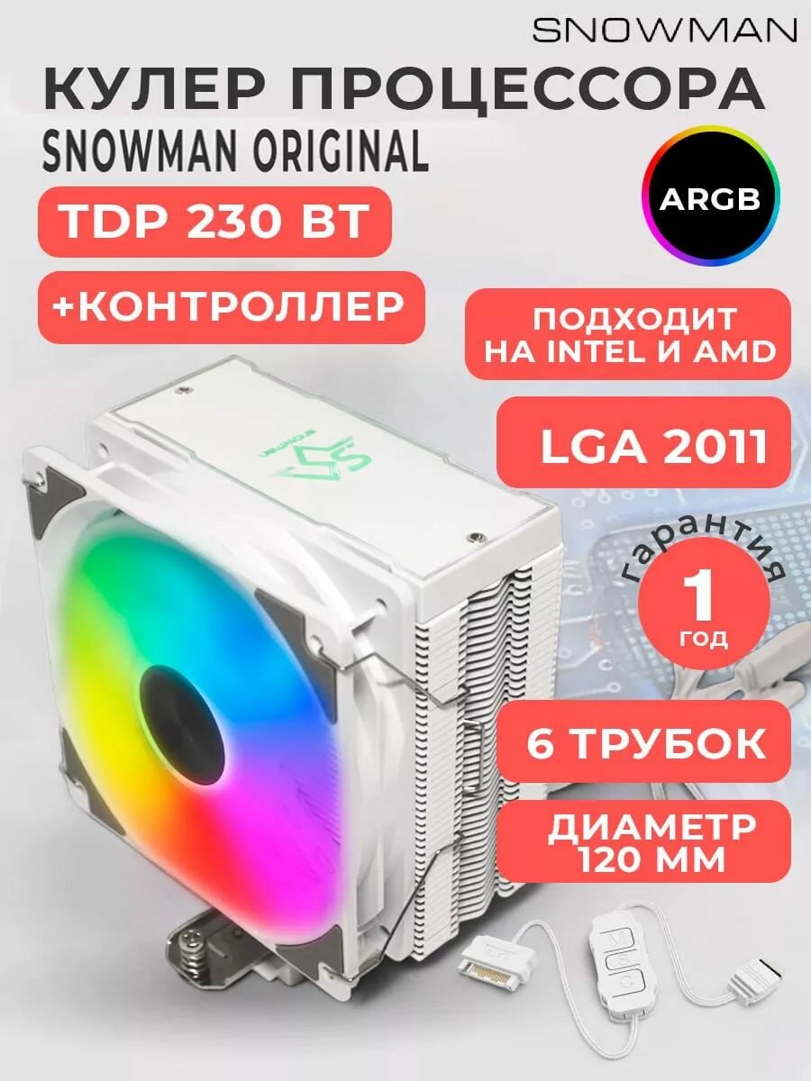 Кулер вентилятор Snowman MT4-V3, с ARGB подсветкой, для процессоров разных сокетов