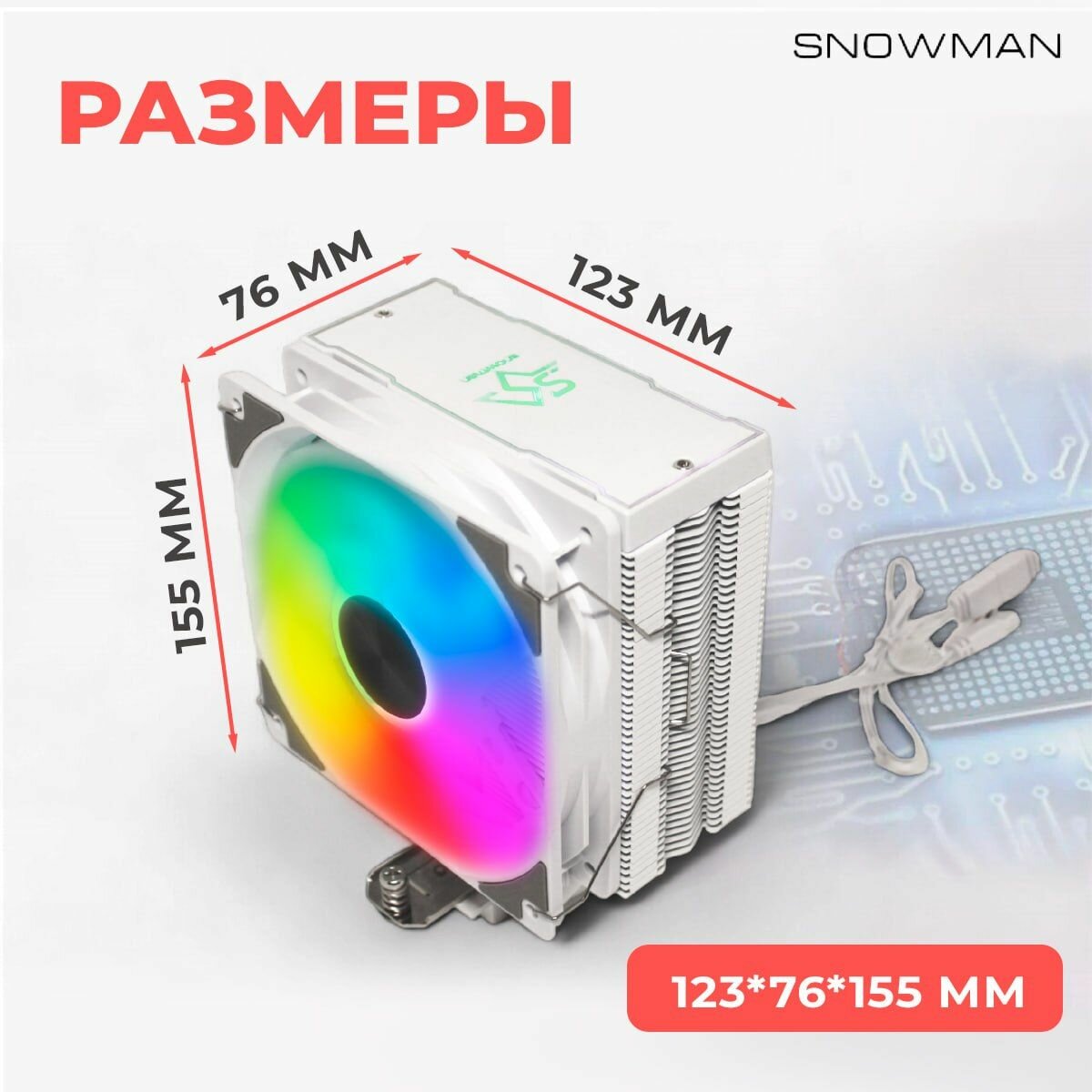 Кулер Snowman MC75-6, башенный, гидродинамические подшипники, RGB-подсветка