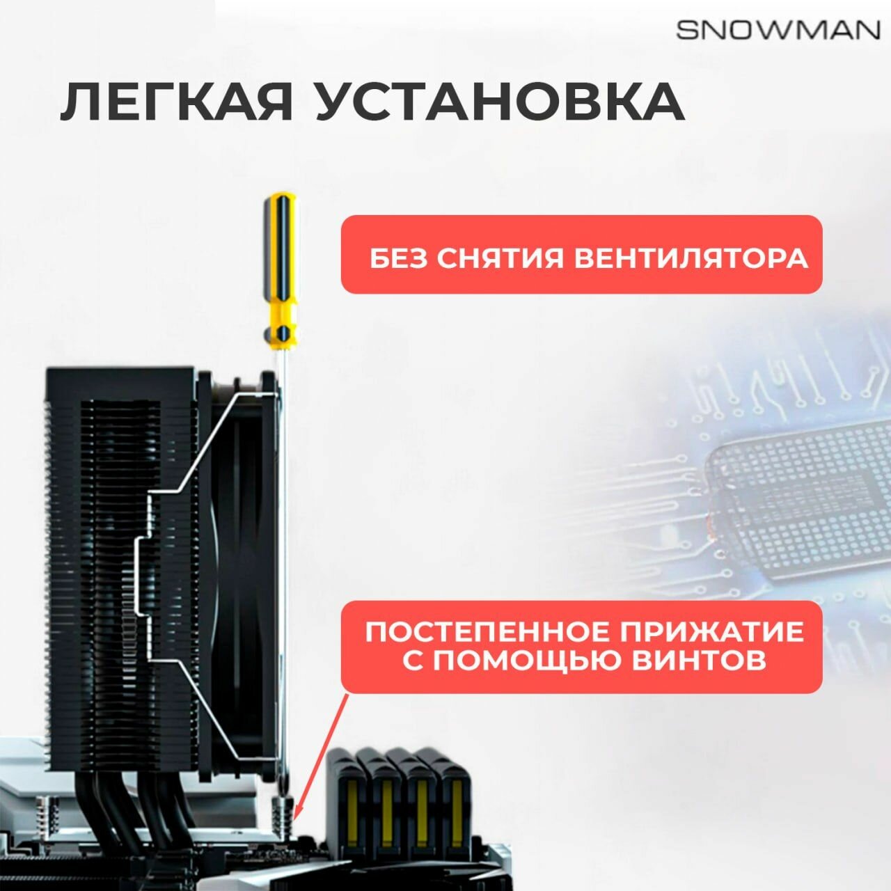 Кулер вентилятор Snowman MT4-V3, для процессора, башенный, RGB-подсветка, 4 тепловые трубки