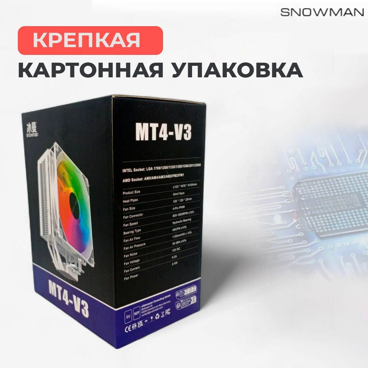 Кулер вентилятор Snowman MT4-V3, с ARGB подсветкой, для процессоров разных сокетов