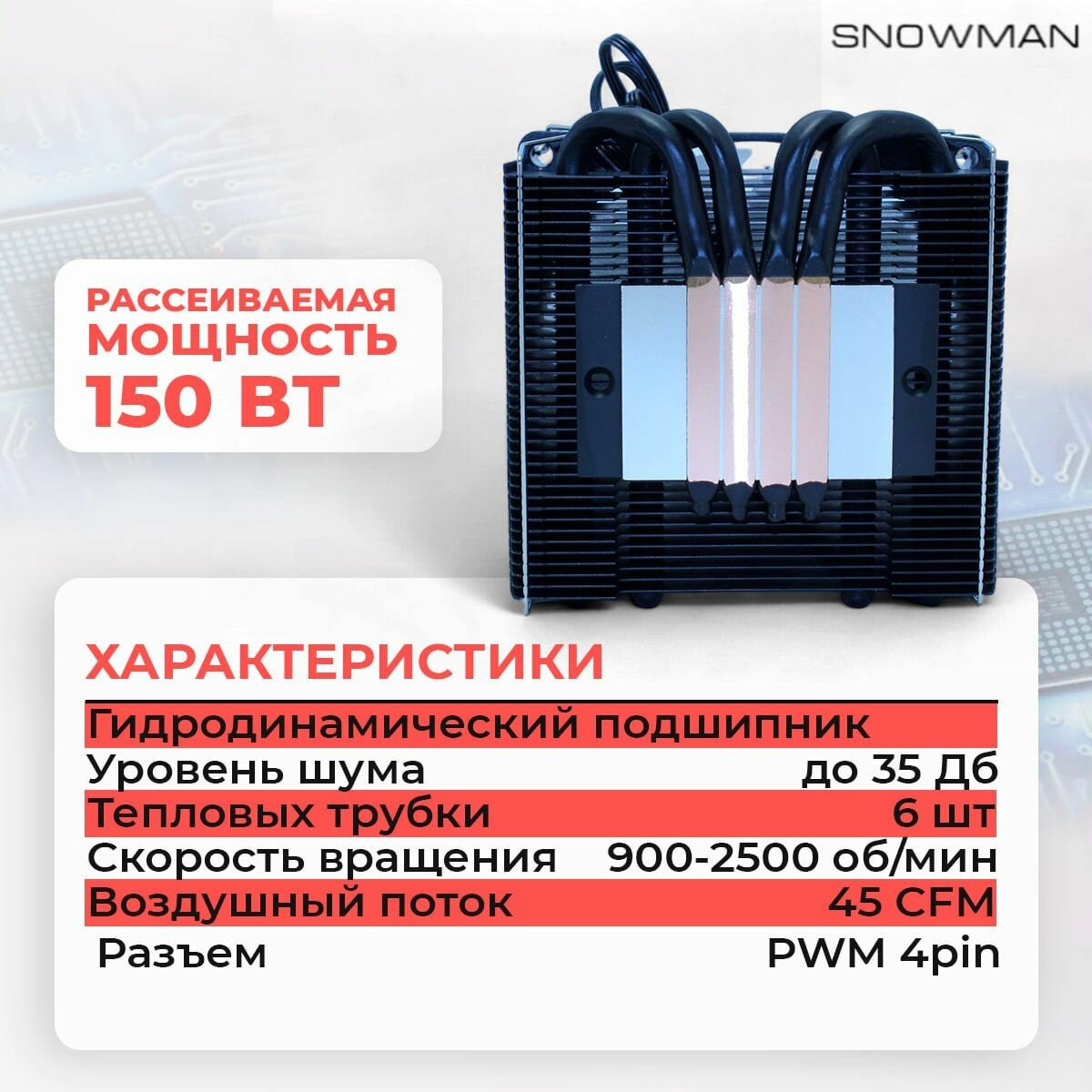 Кулер Snowman MT6 V3, башенный, с подсветкой и контроллером, для процессора, 1 вентилятор, 12см